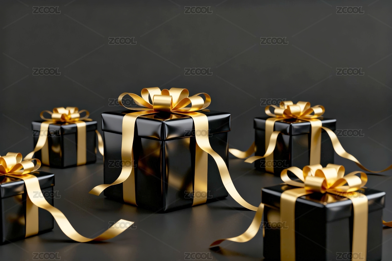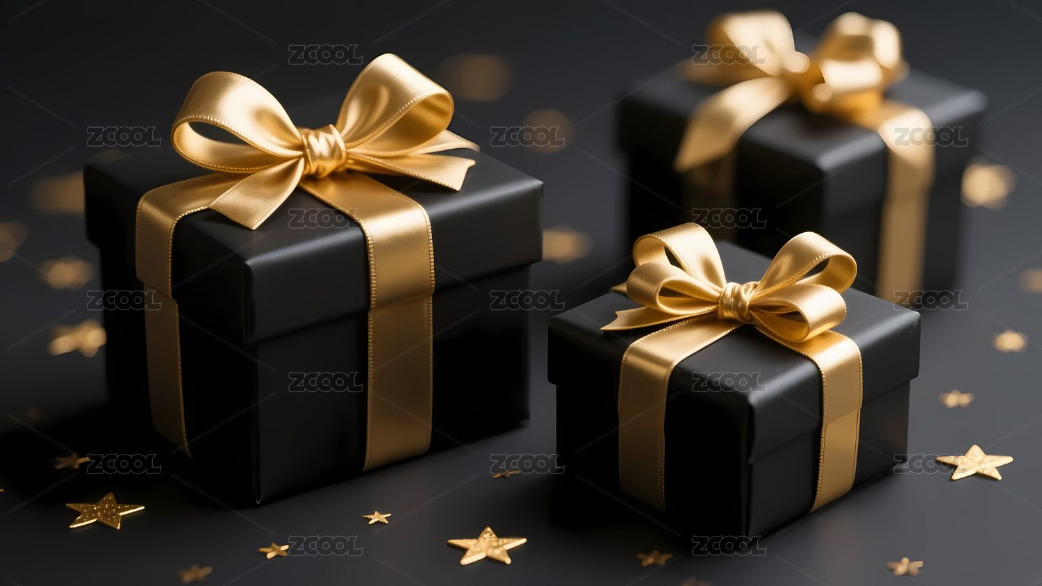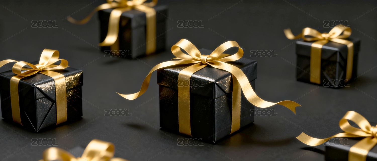 黑色礼盒与金色丝带的节日场景