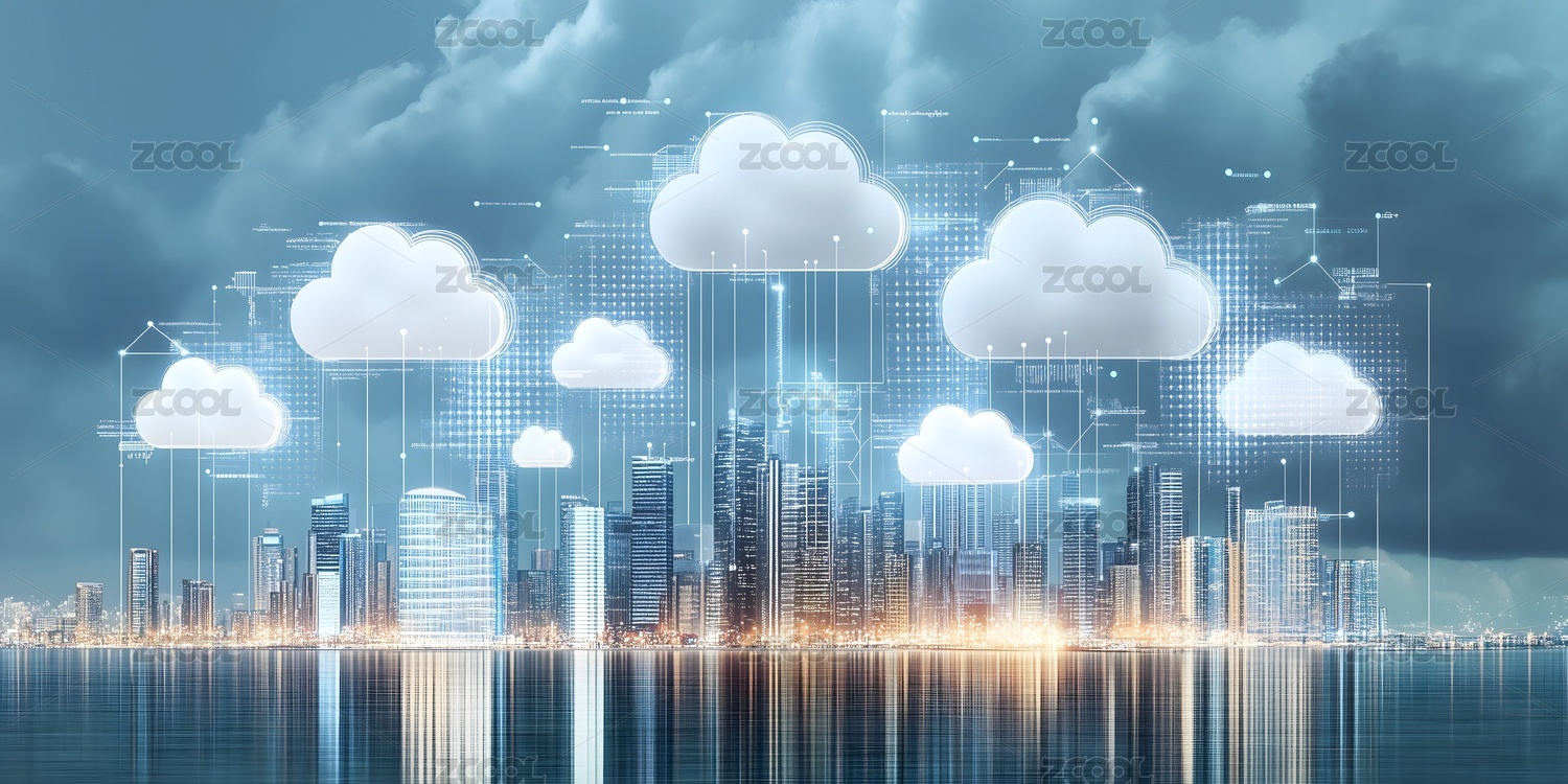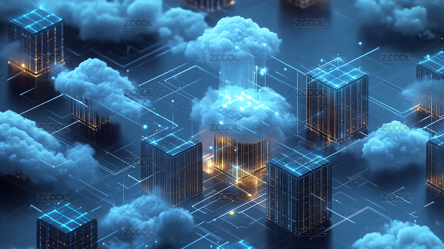 光影,建筑,现代,透明,空间,蓝色,天空,橙色,云朵,幻想
