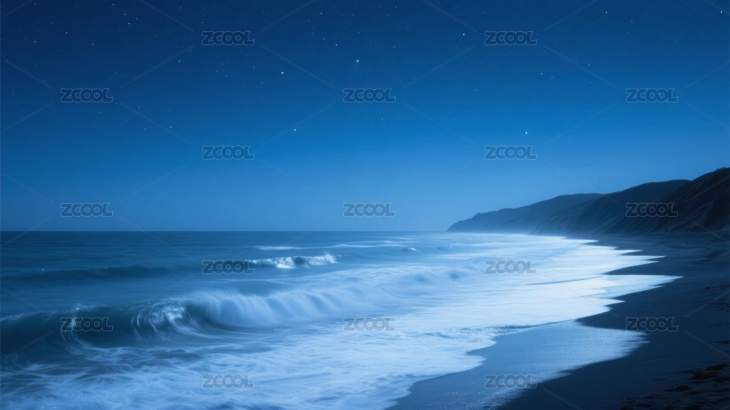 海浪夜景海滨风光场景