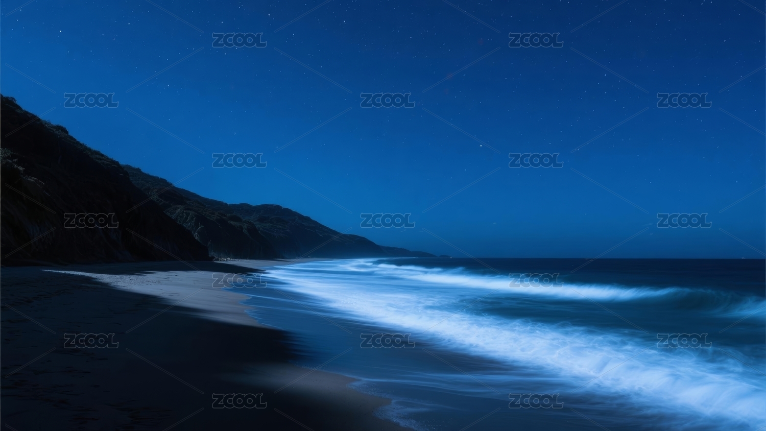 荧光海浪星空海滨背景