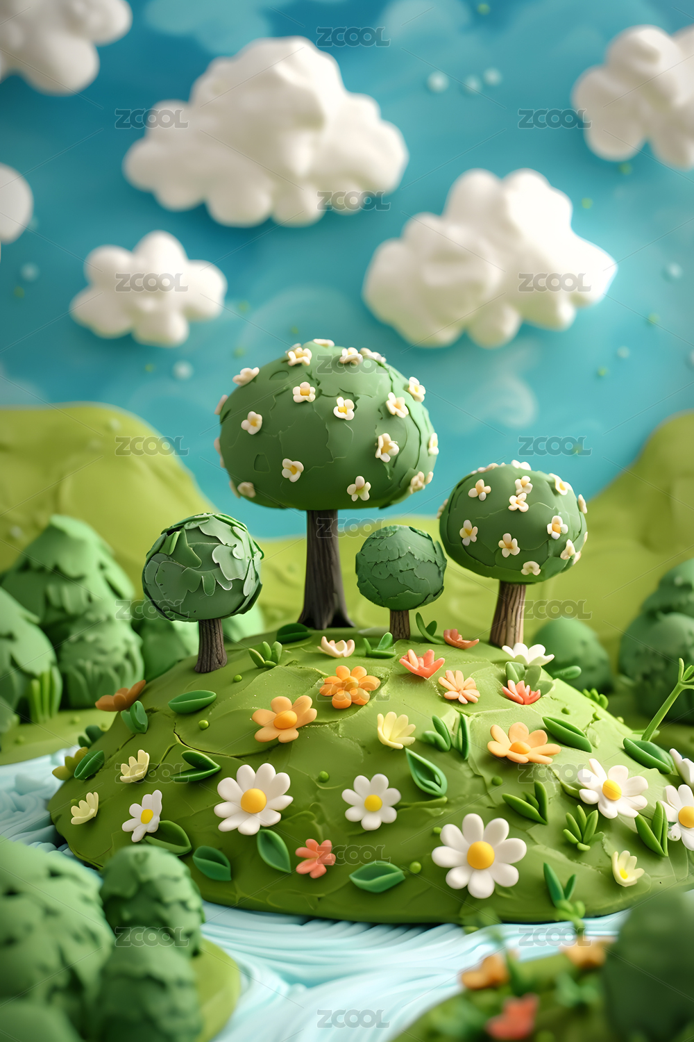 卡通森林与云朵
