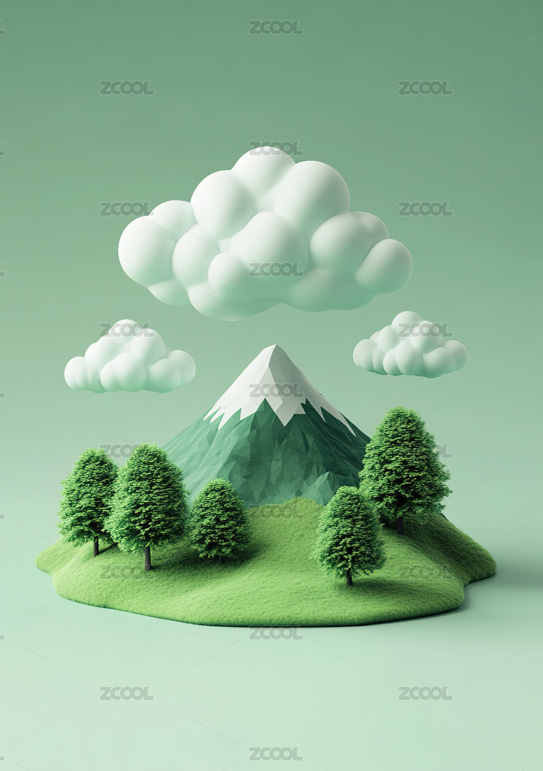 3D卡通高山雪山蓝天白云插画