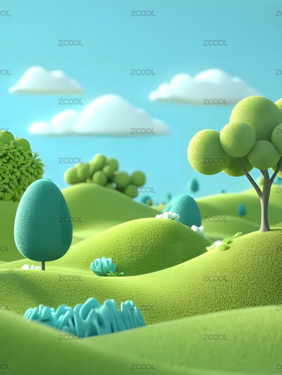 3D渲染卡通草地山坡