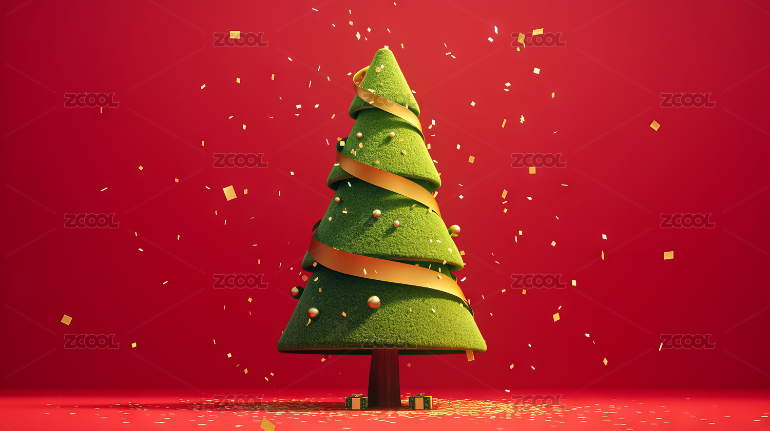 圣诞树,红色背景,黄色星星,圣诞,装饰,节日,氛围,简约,设计,圣诞节