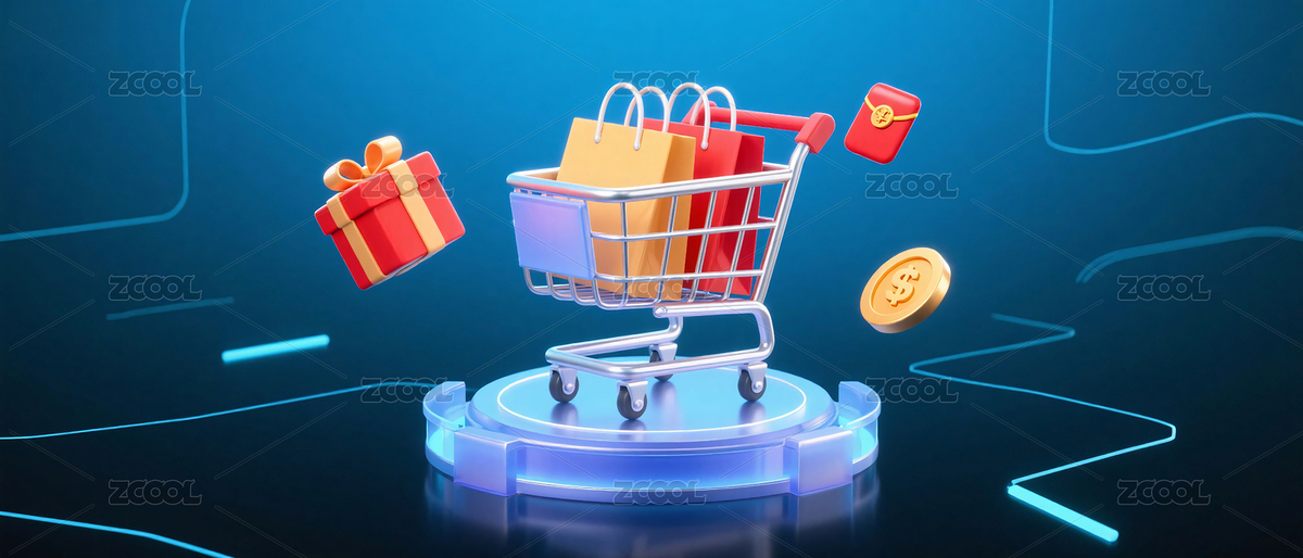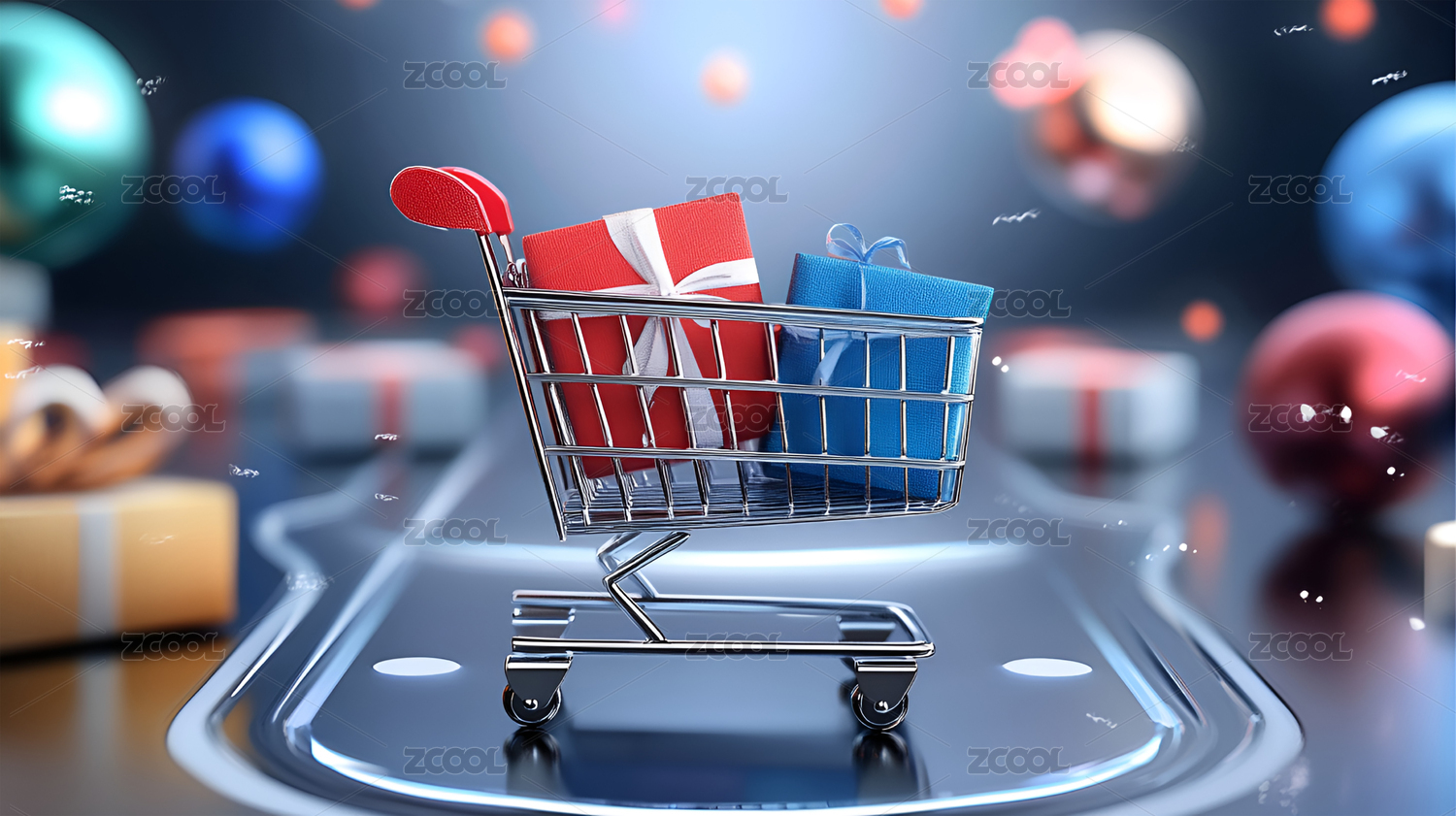 购物车,礼品盒,红包,购物袋,金币,电商,促销,3D,消费,网购