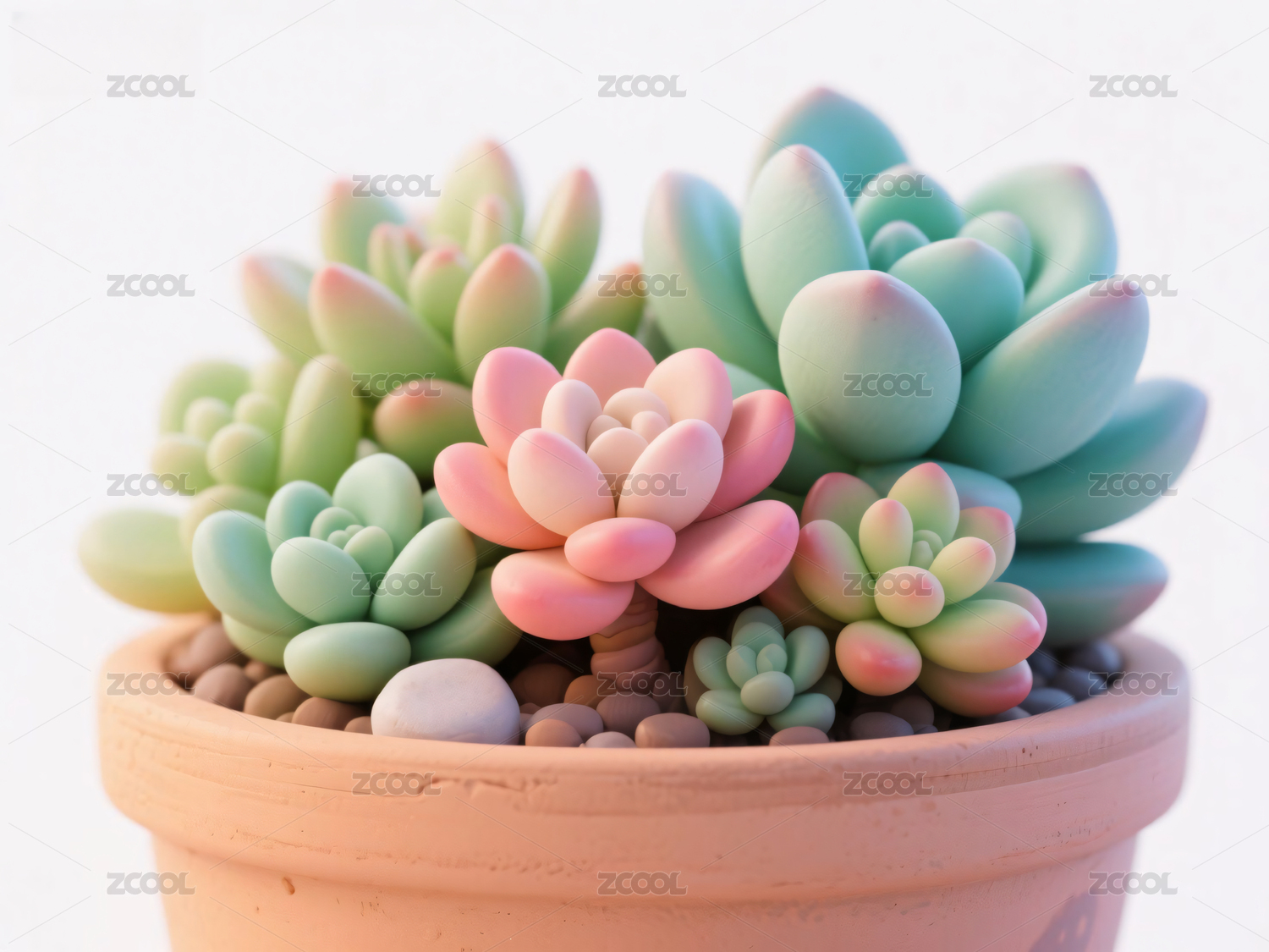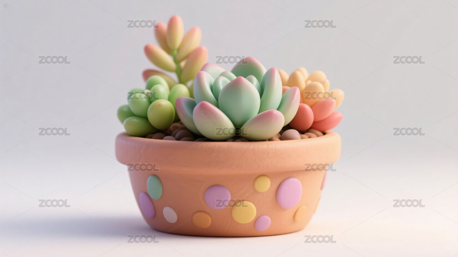 3D卡通风格一盆多肉植物盆栽