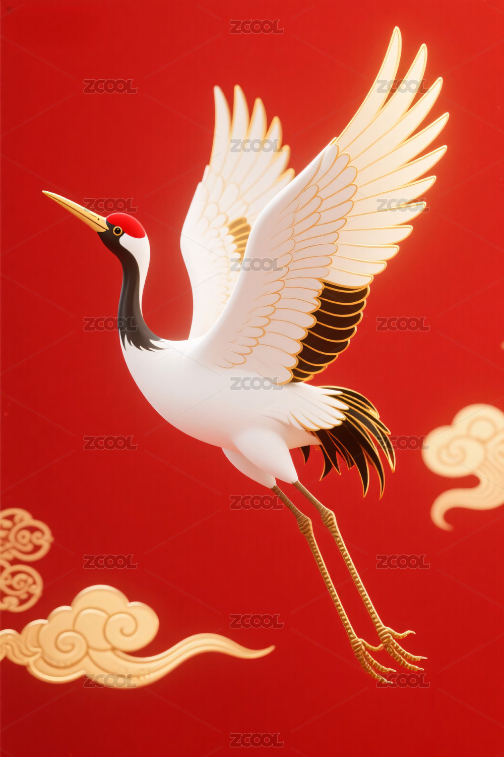 红色背景金色仙鹤平面背景