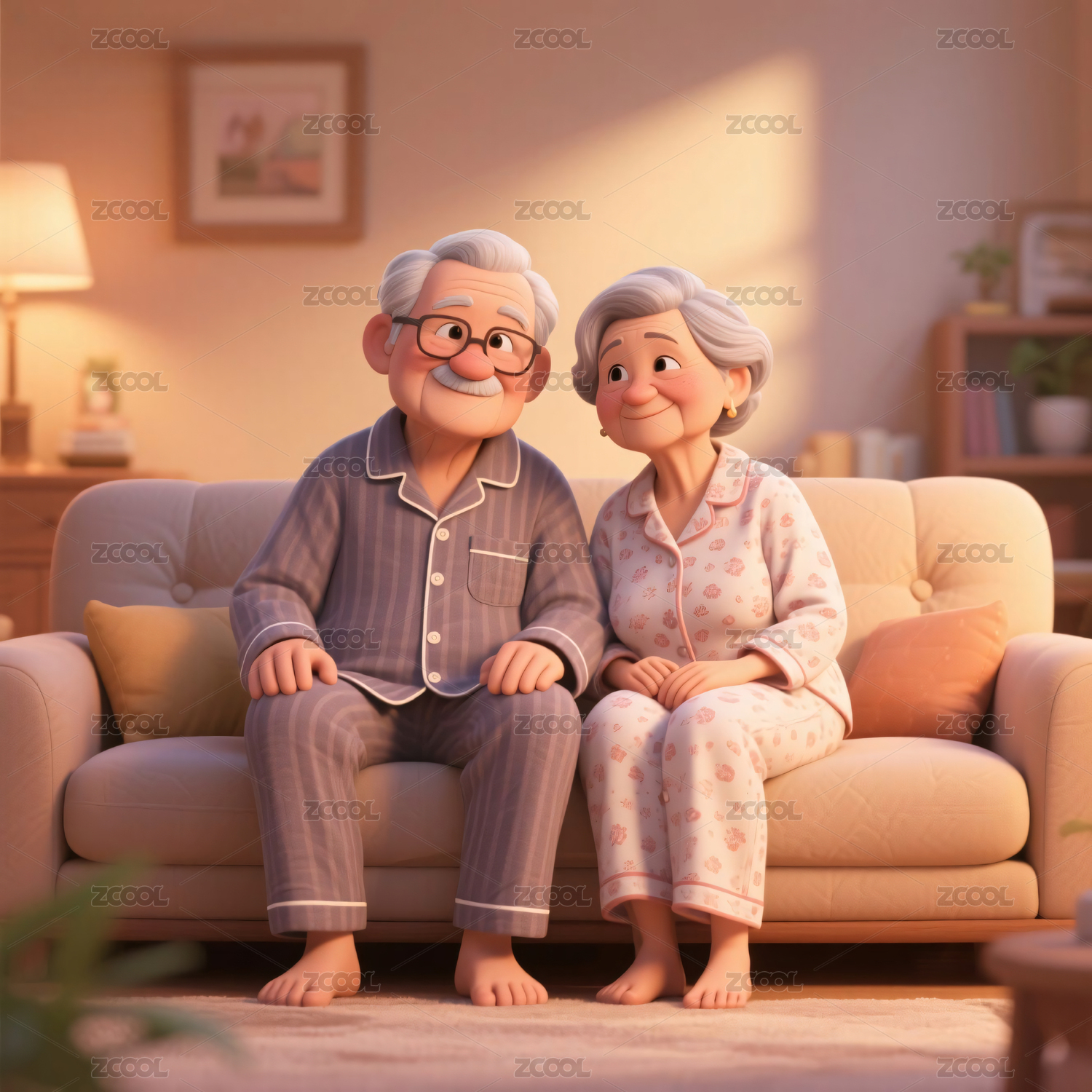 老年夫妻坐在沙发上
