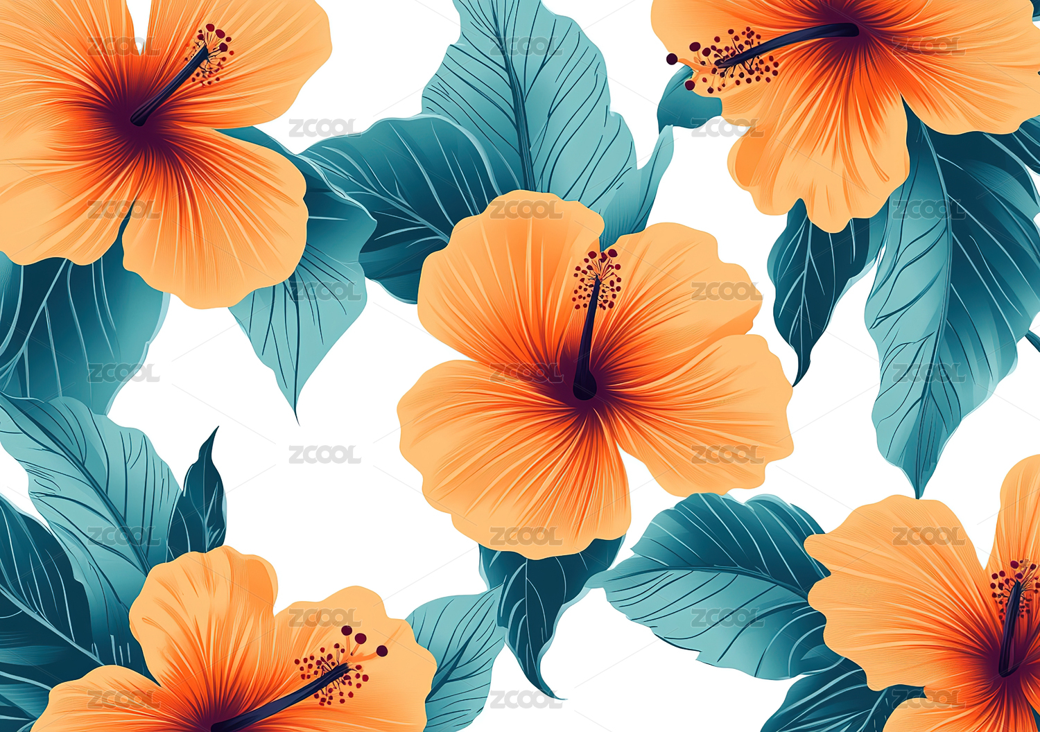 橙色花朵与绿色叶子的美丽图案