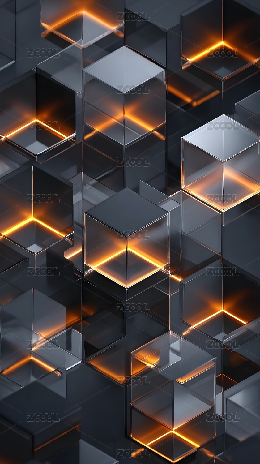 橙边透明方块科技艺术风格画面