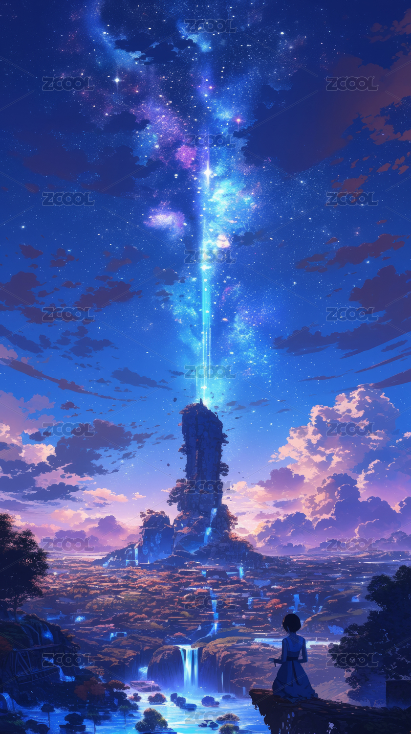 插画,卡通,风景,自然,色彩,环境,建筑,梦幻,星空,天空