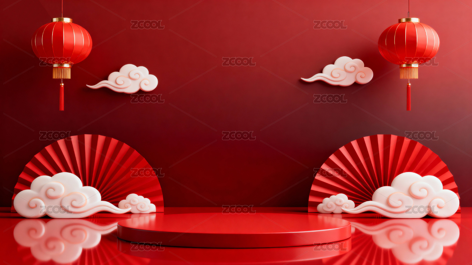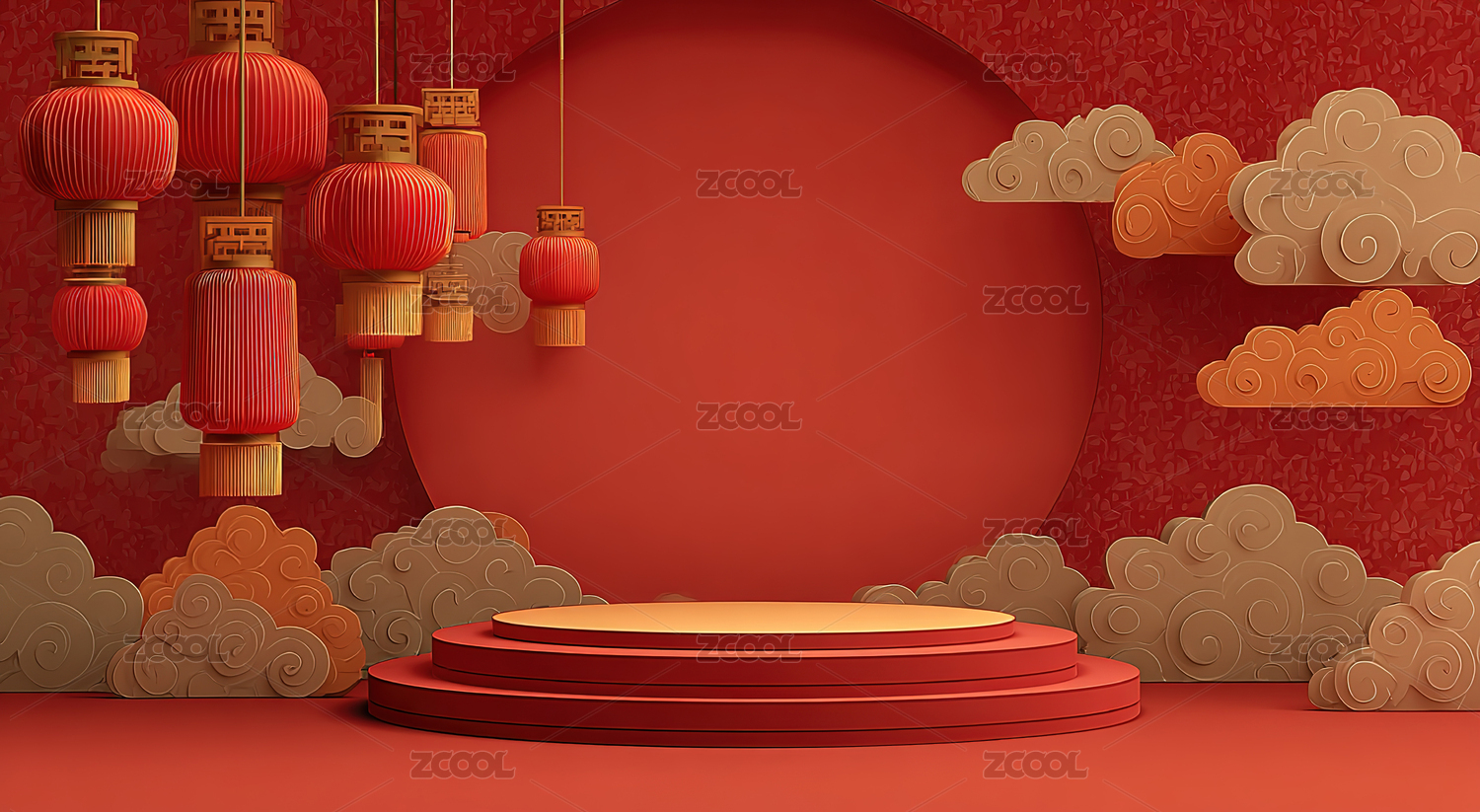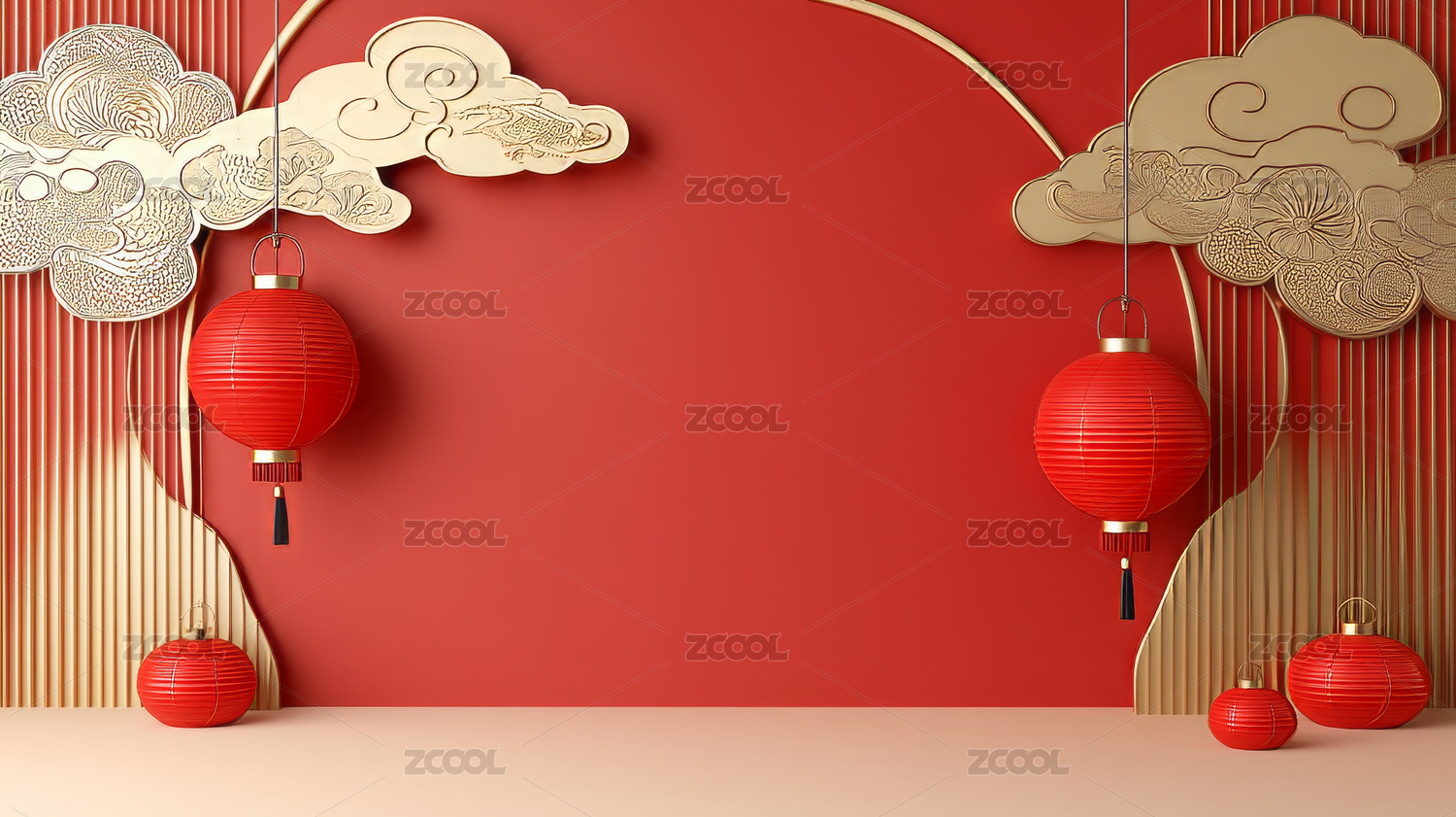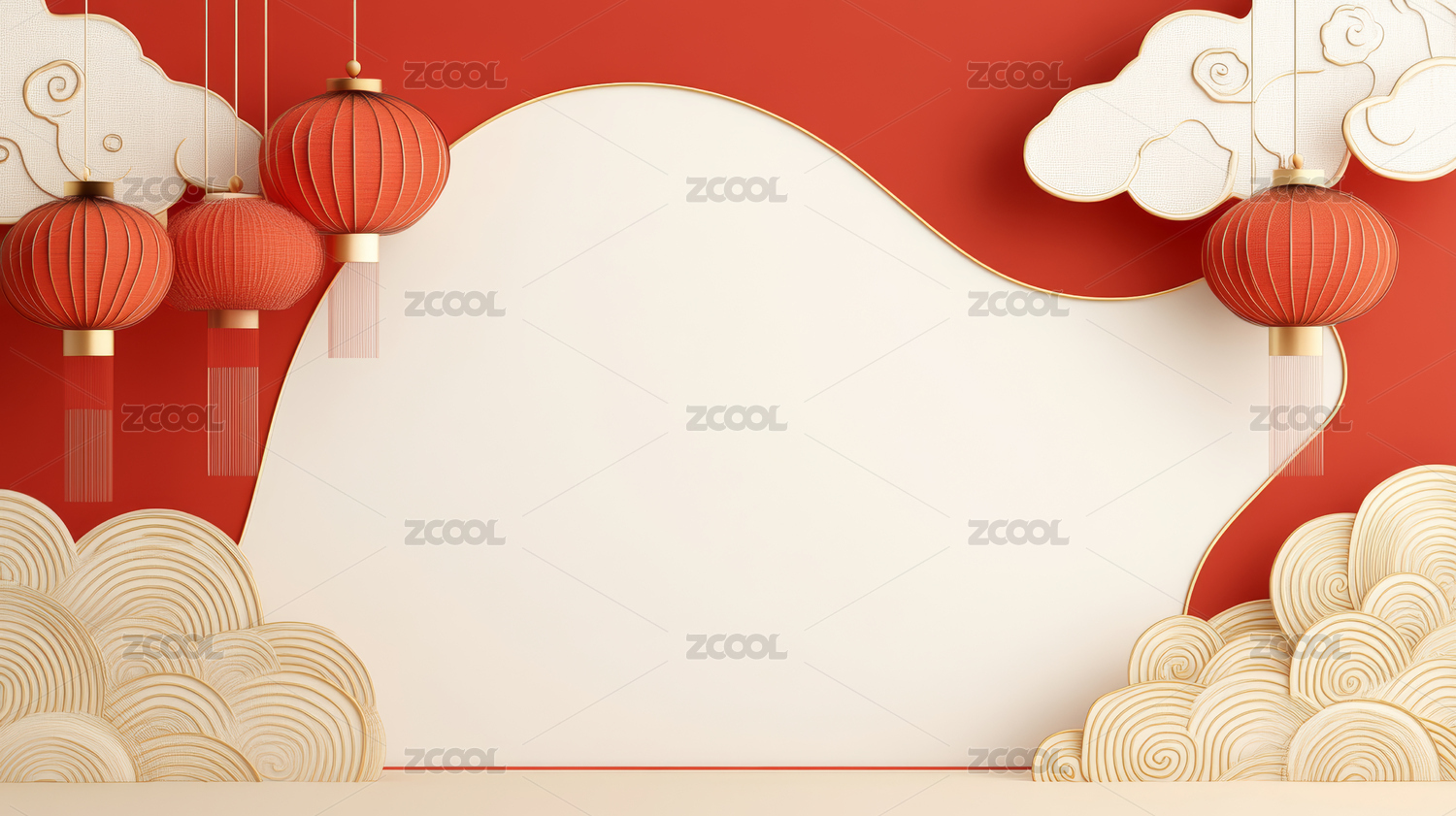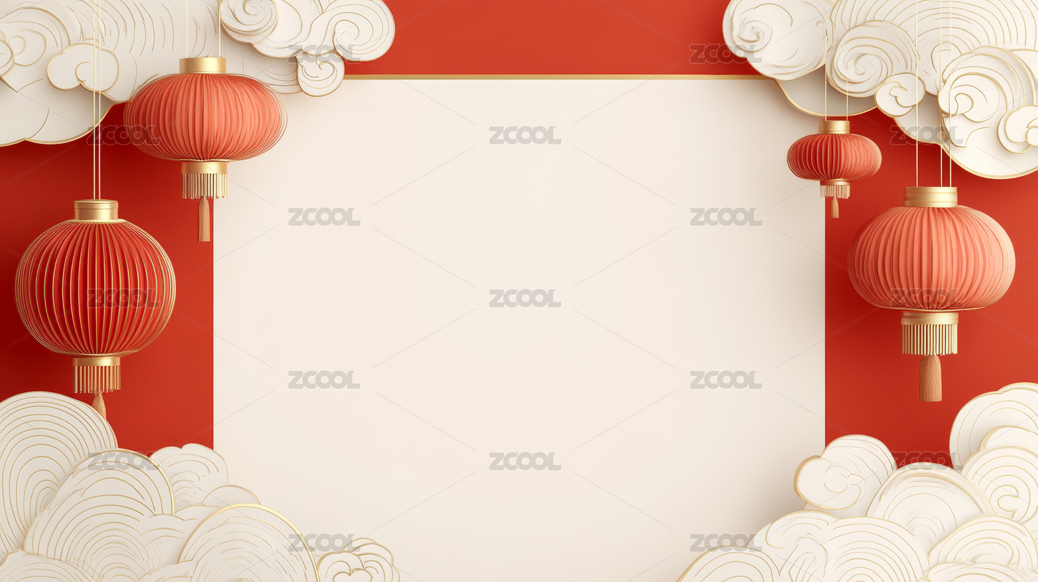 红色灯笼与云朵装饰场景