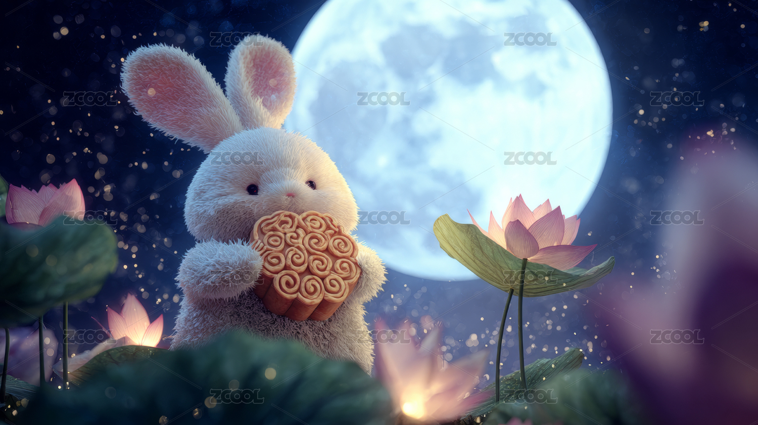 月兔与月饼的梦幻夜景