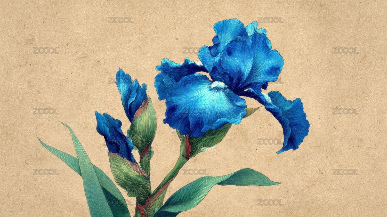 蓝色鸢尾花植物插画