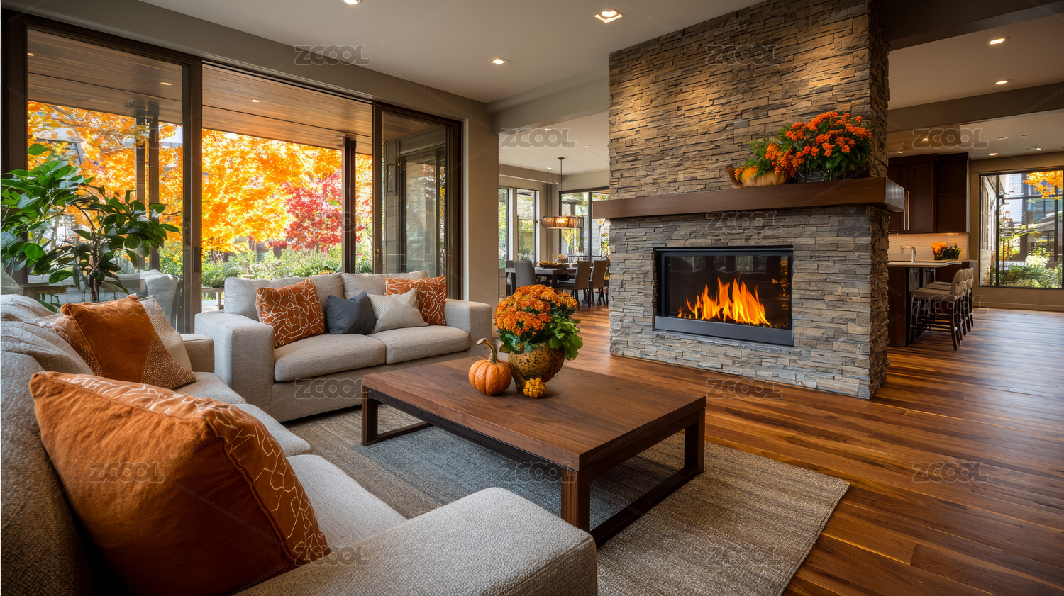 现代客厅秋季温馨氛围