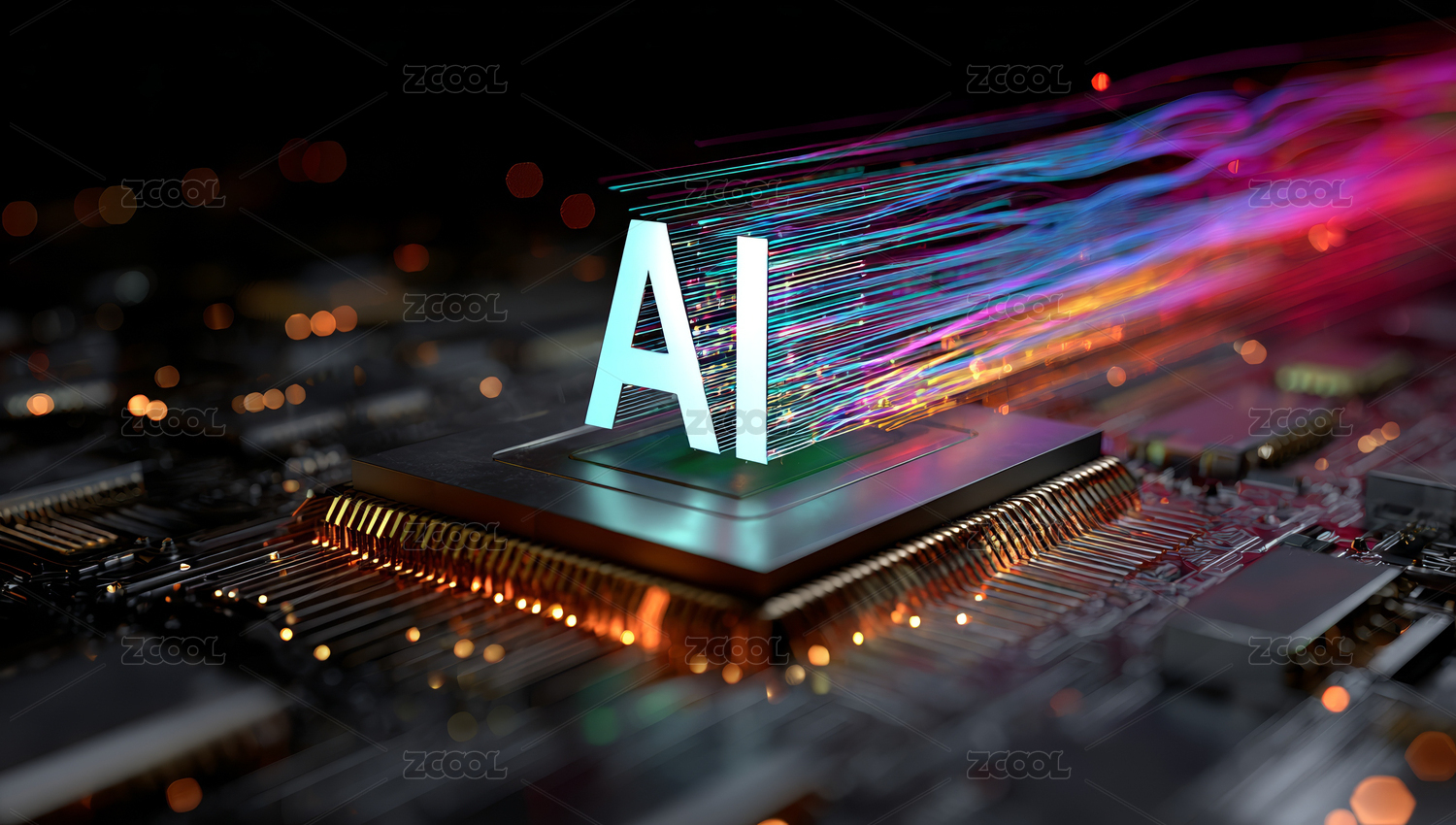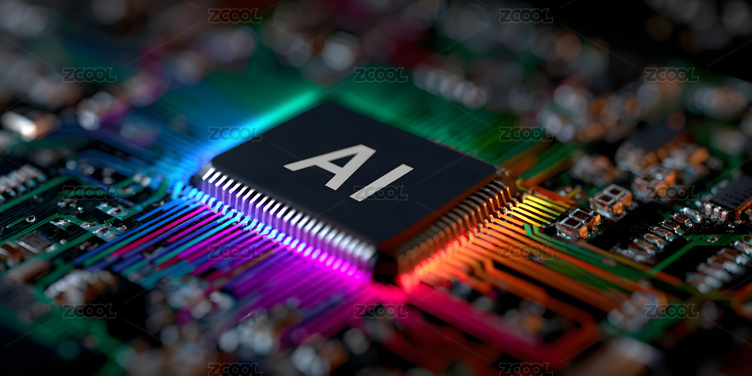 AI芯片与彩色数据流科技图