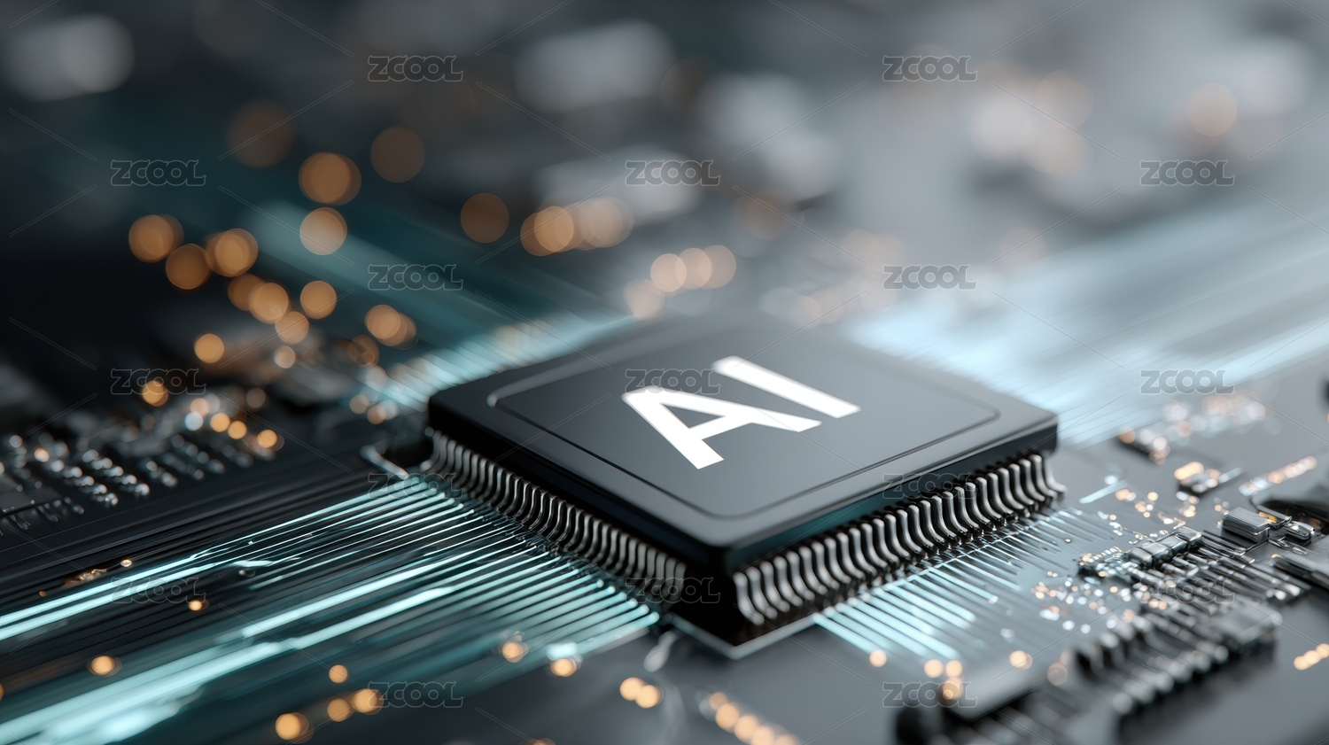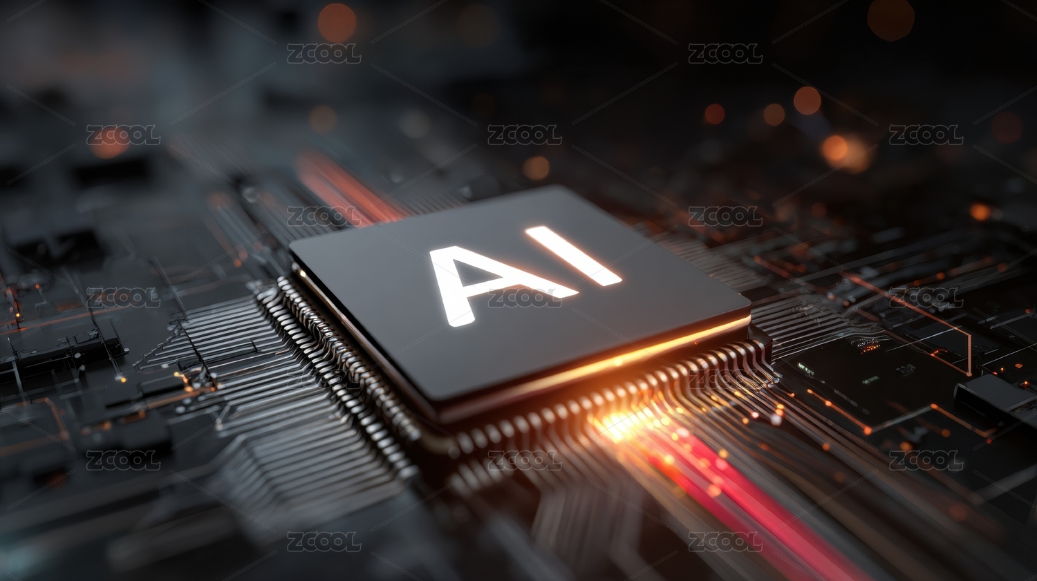 AI芯片发光电路板 科幻科技氛围