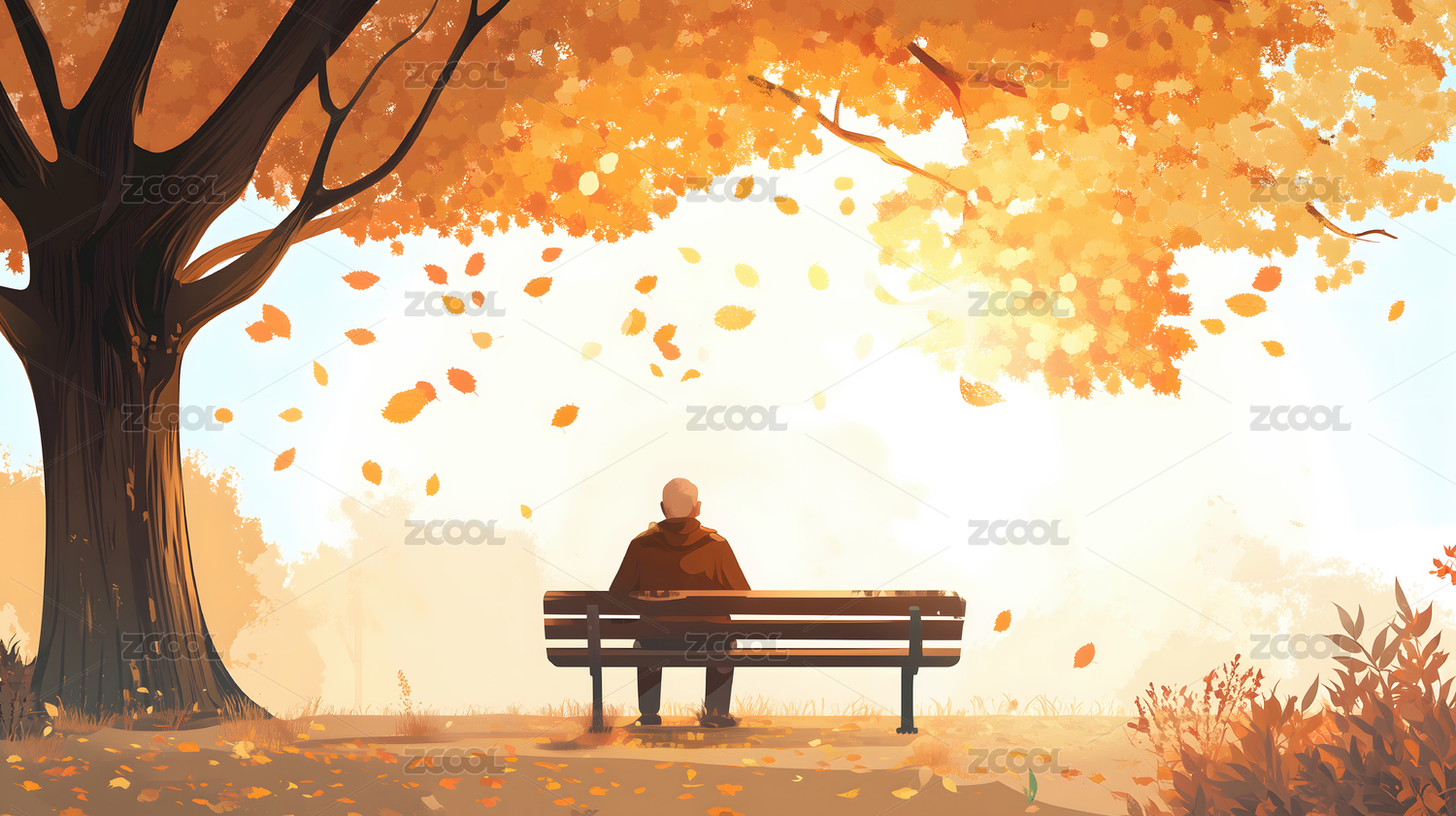 坐在树下长椅上的老人