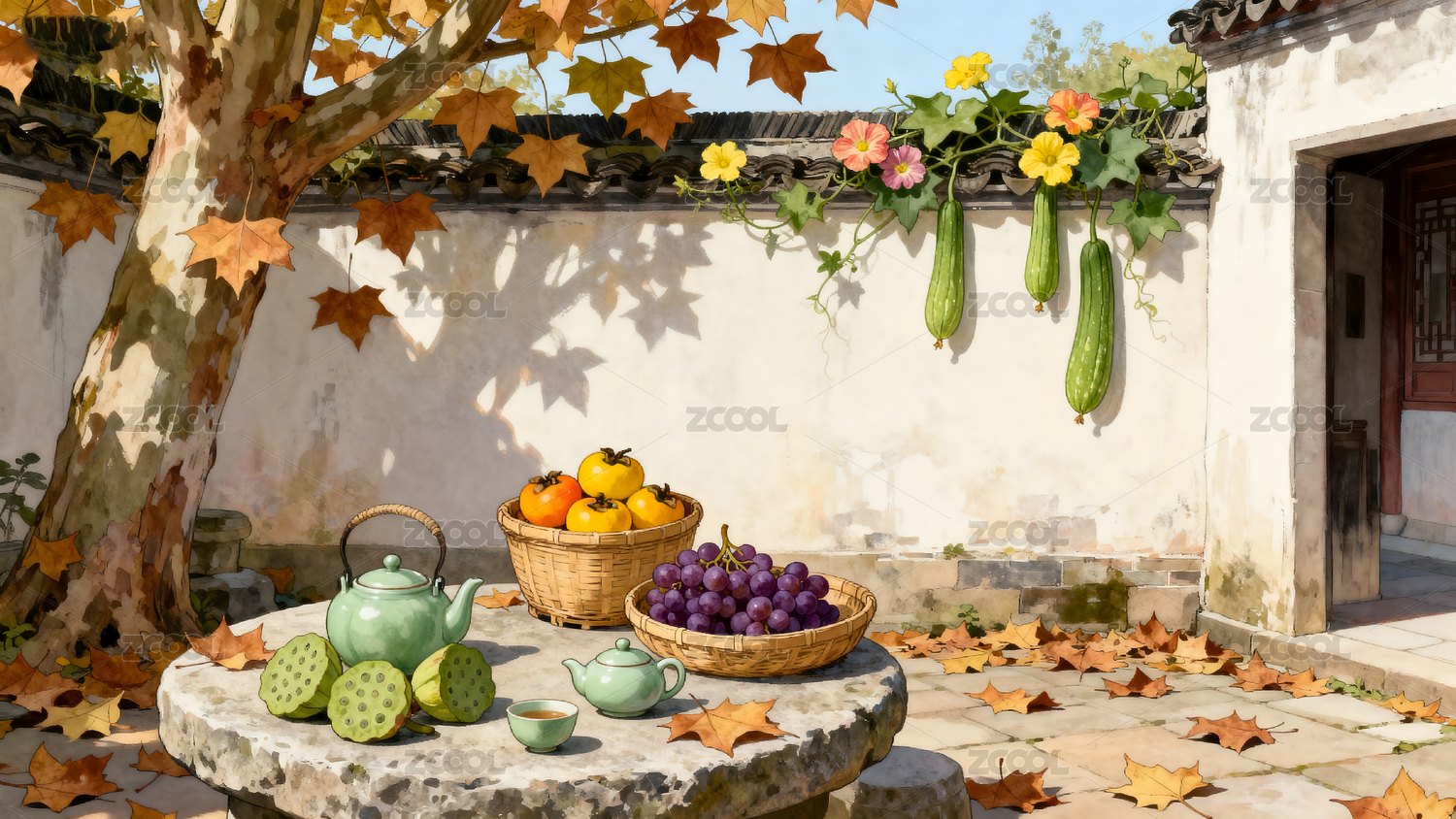 秋日农家小院
