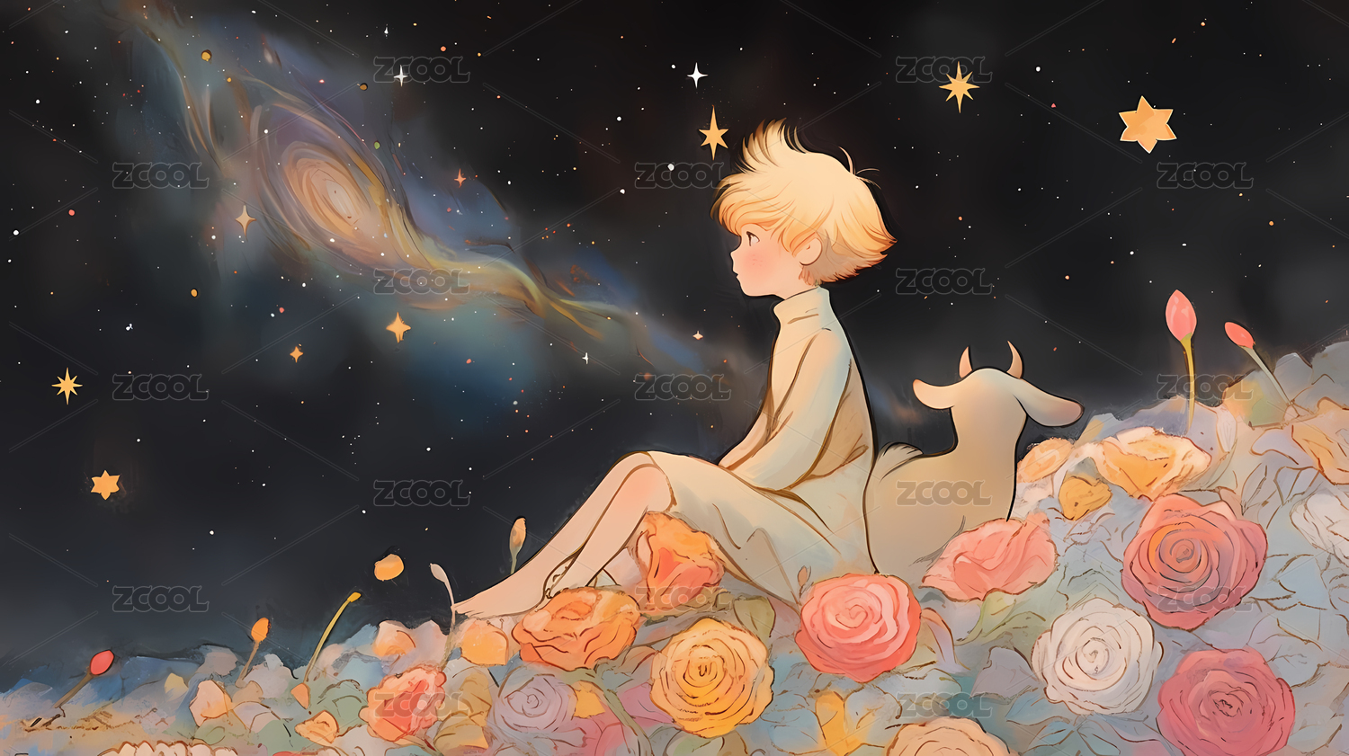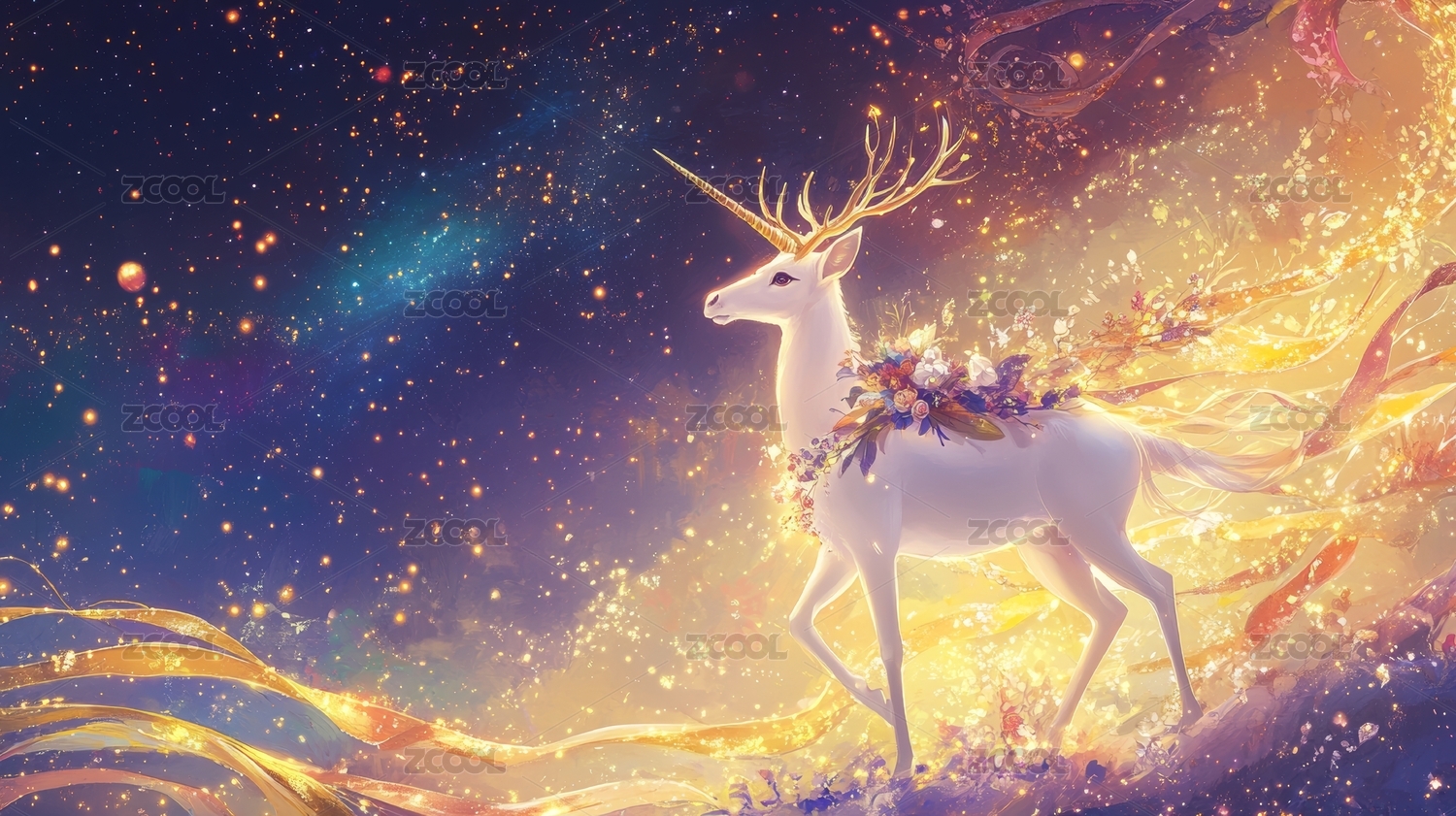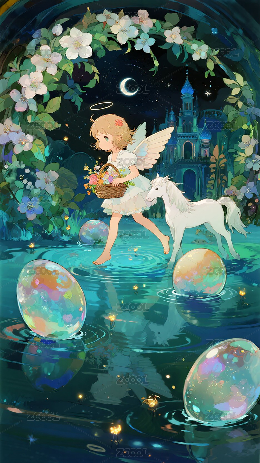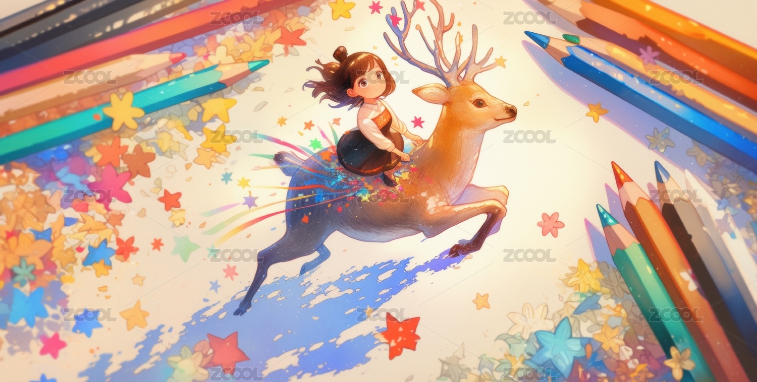 插画,卡通,漫画,中国风,国潮风,少女,彩虹,梦幻,云朵,艺术
