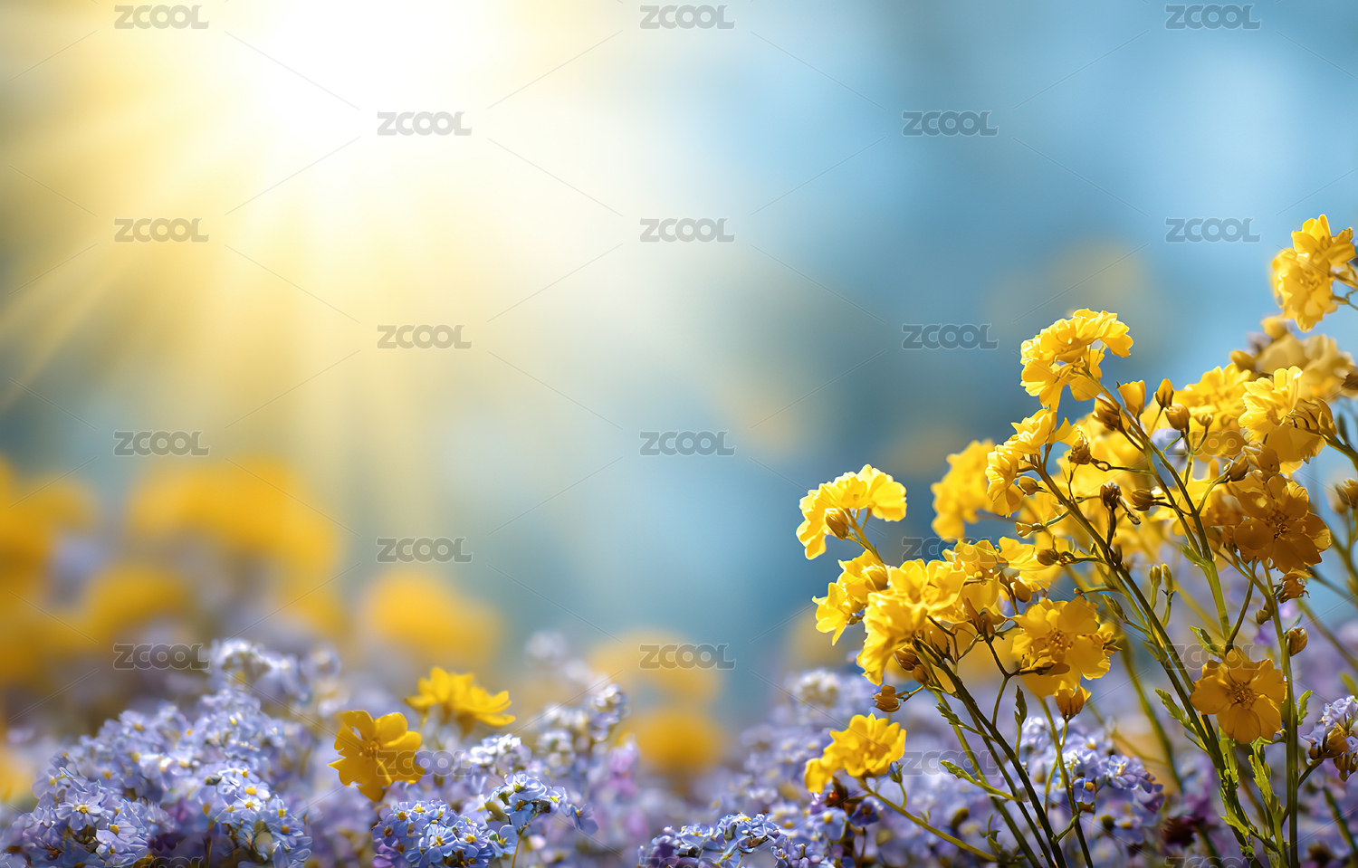 阳光下的黄色与紫色野花
