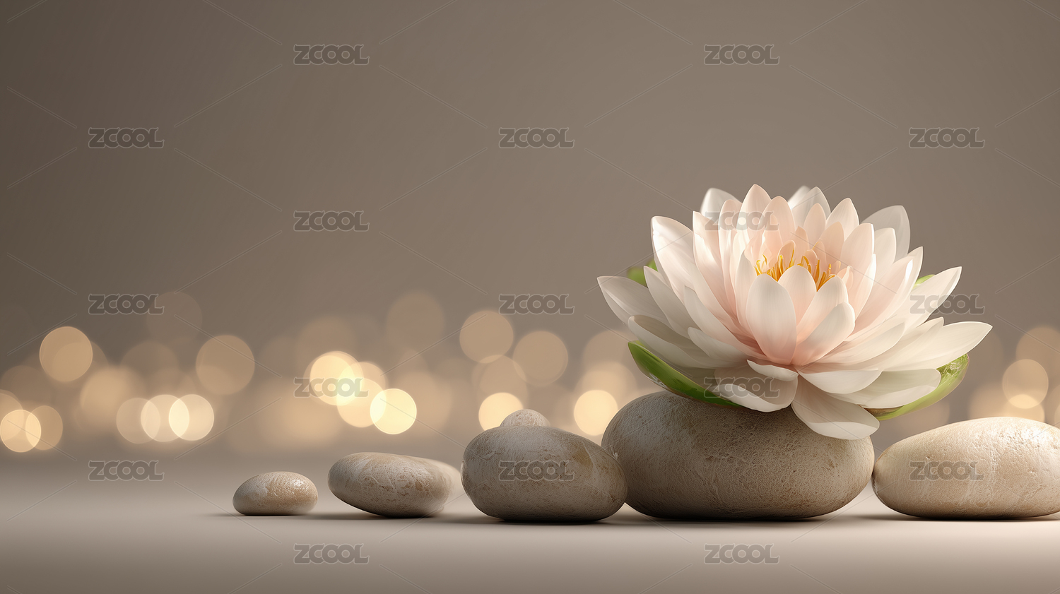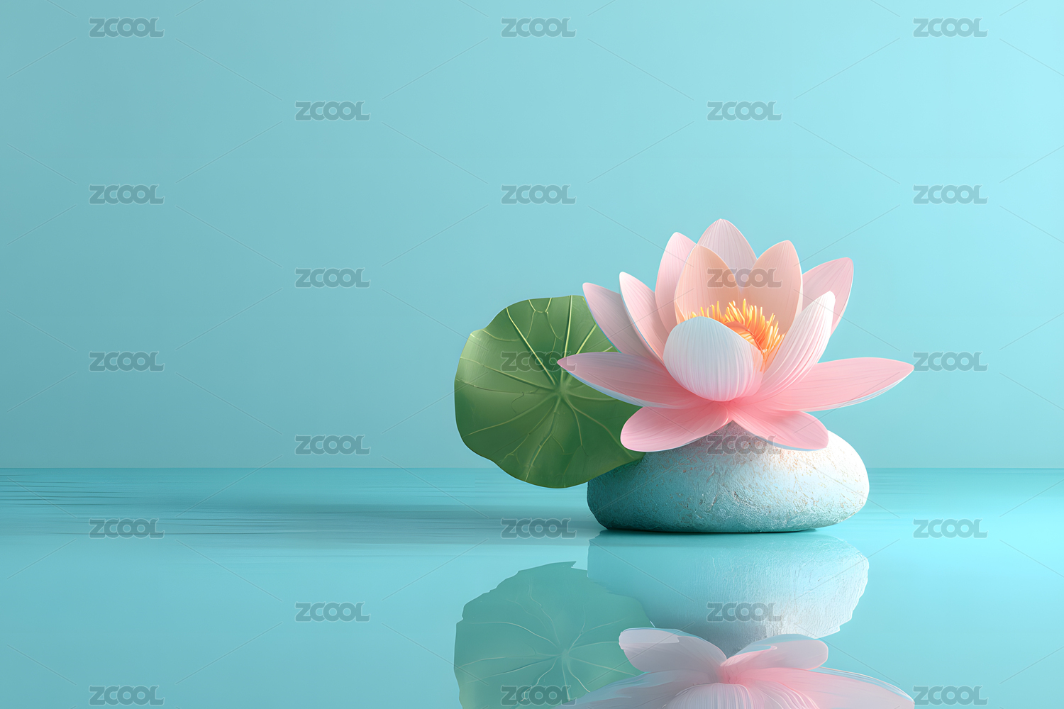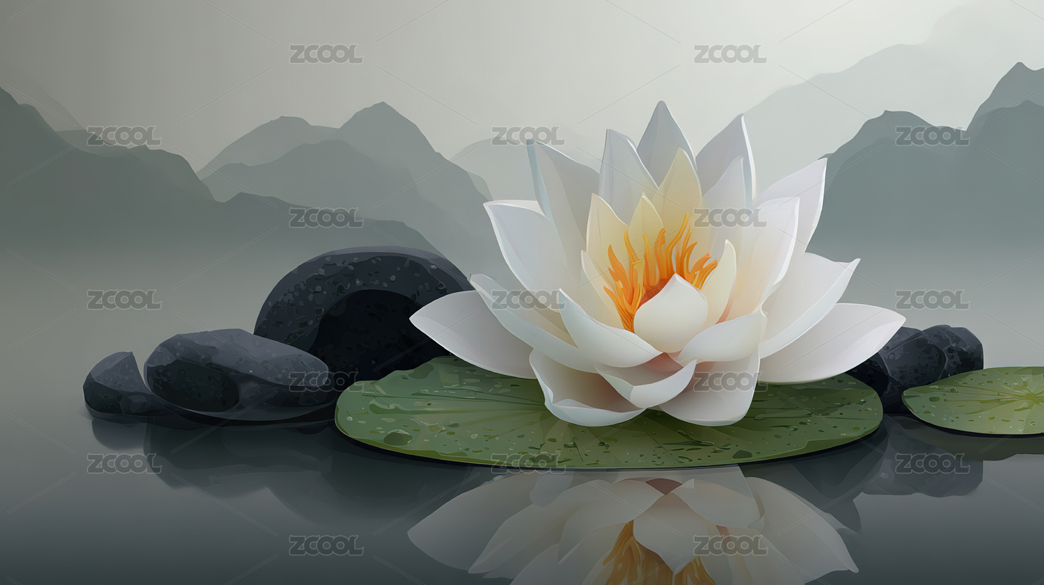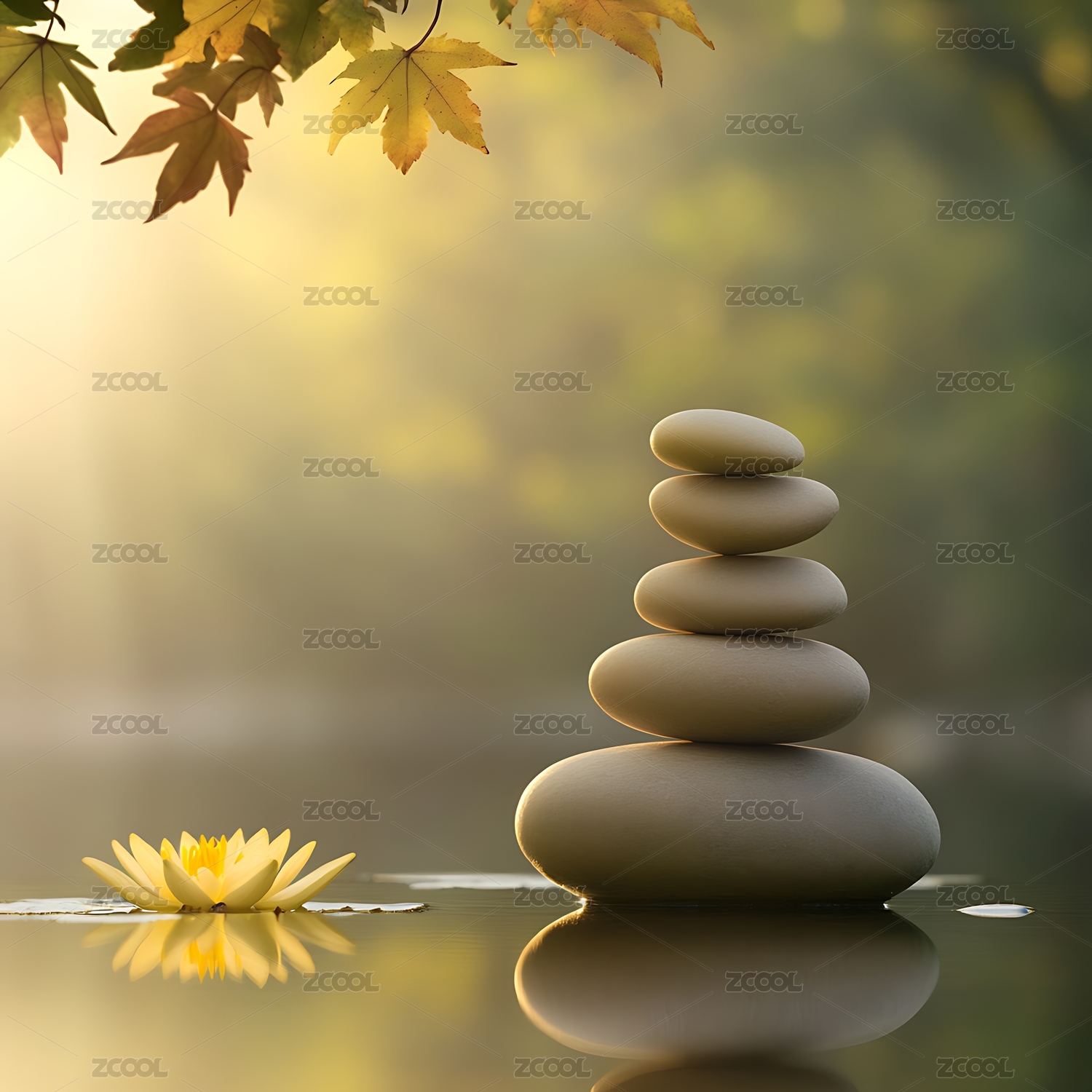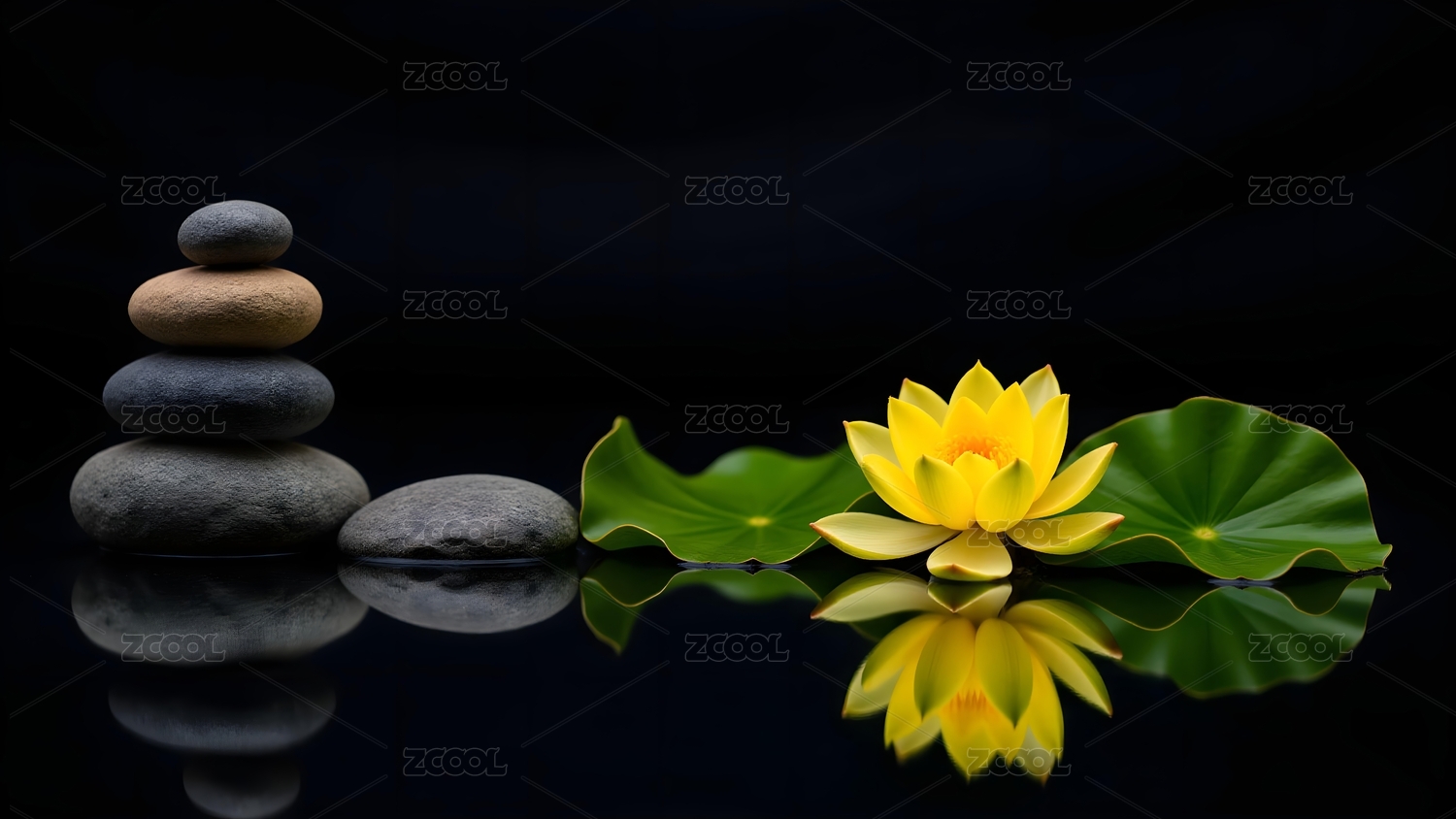 禅意,莲花,自然,石堆,倒影,黄色,荷叶,静物,黑色背景,水面