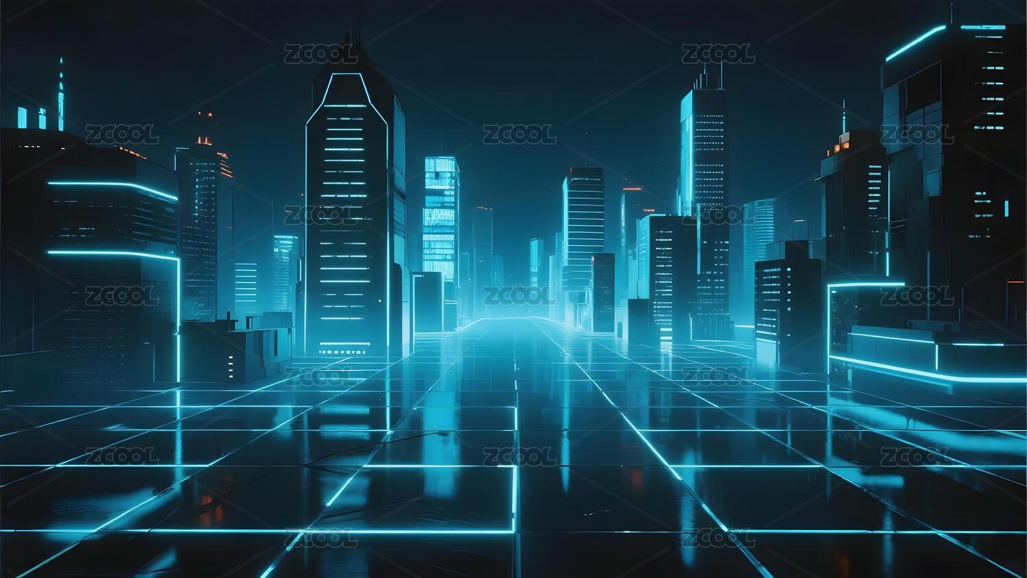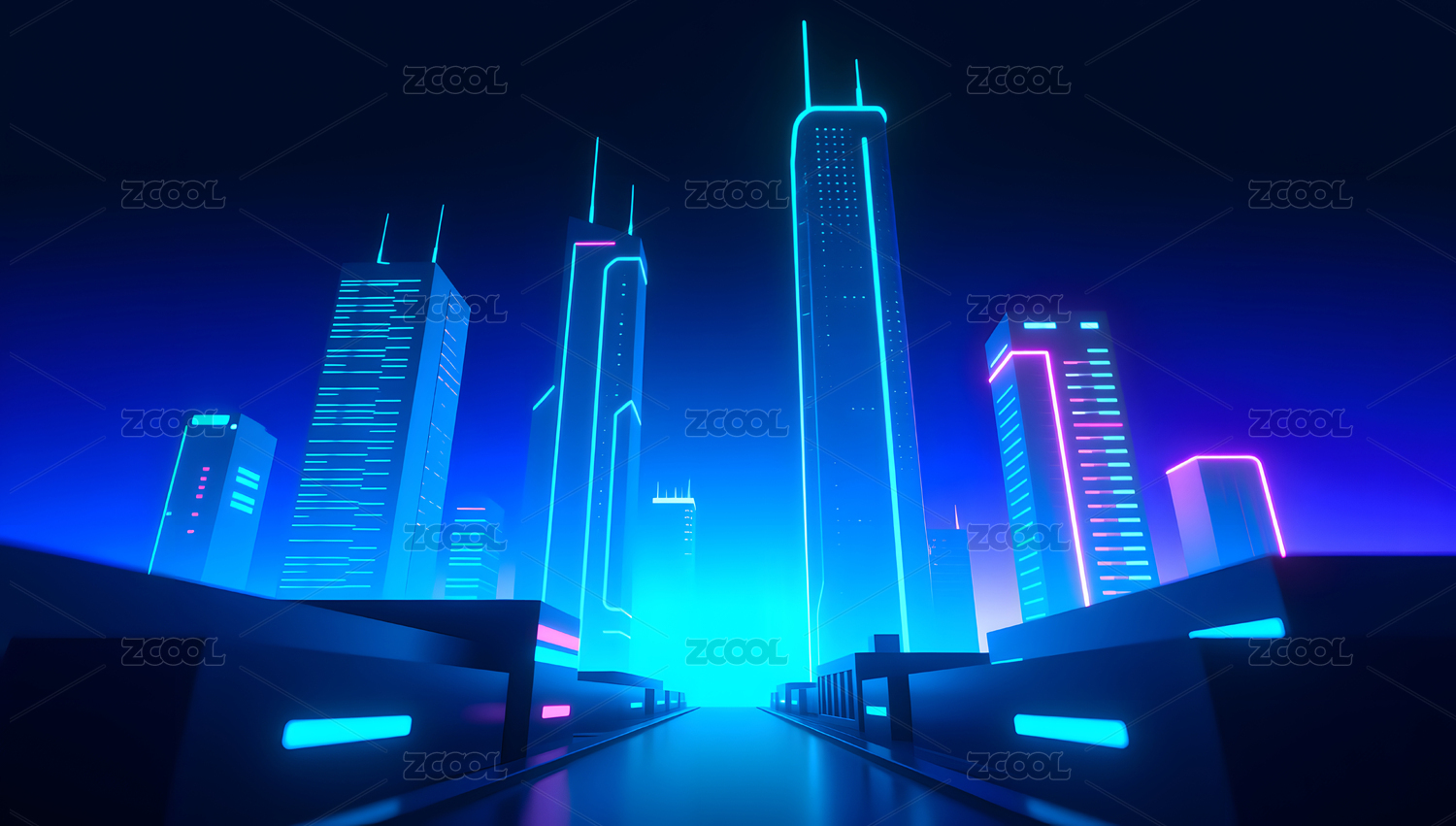 赛博朋克城市建筑现代科幻商务三维渲染插画