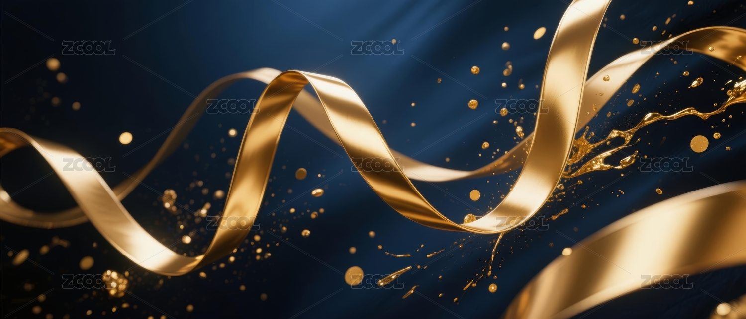 金色丝带与深蓝背景