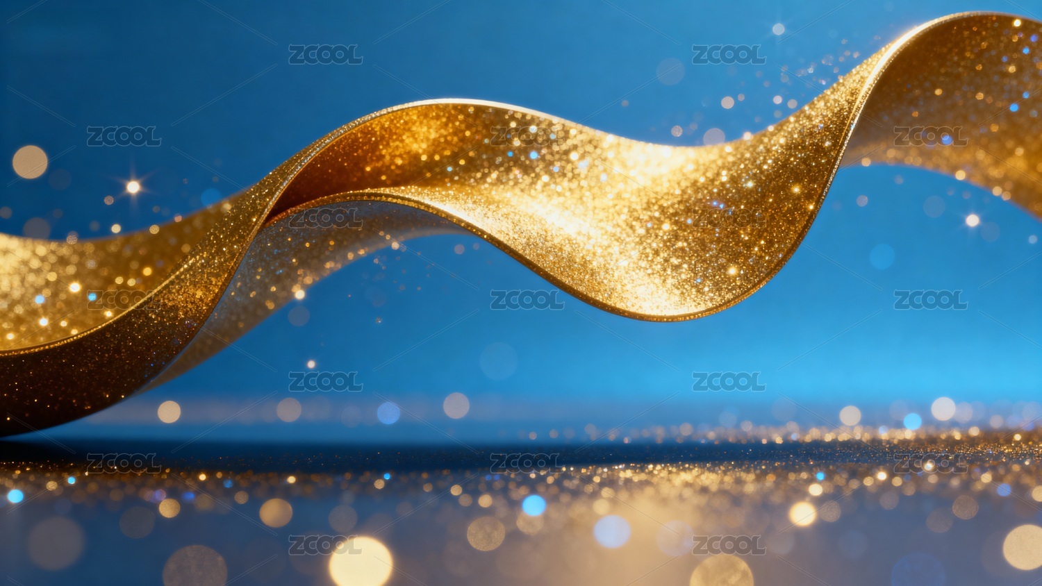 金色丝带在深蓝背景上蜿蜒