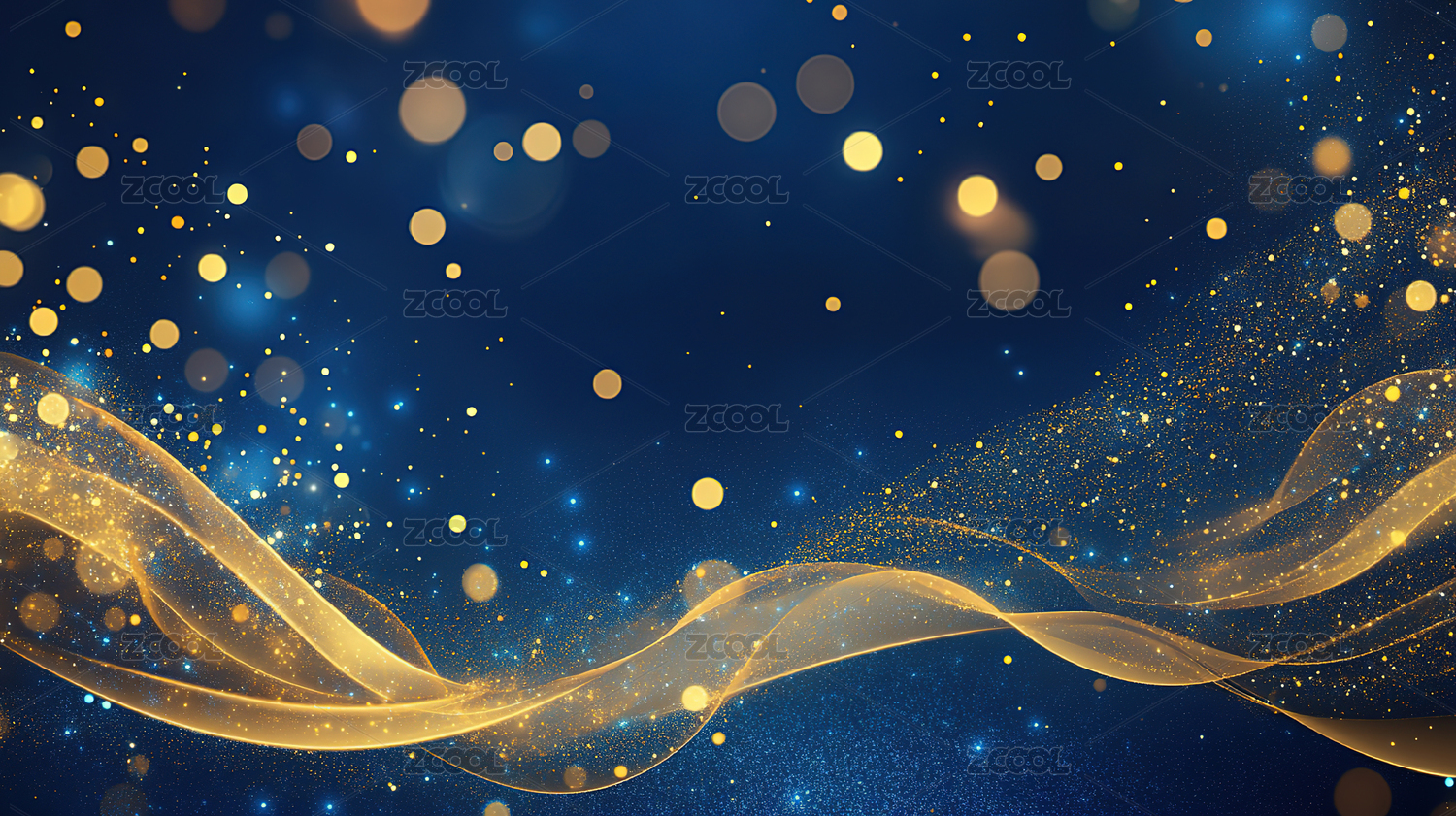深蓝背景金色波浪光斑图案