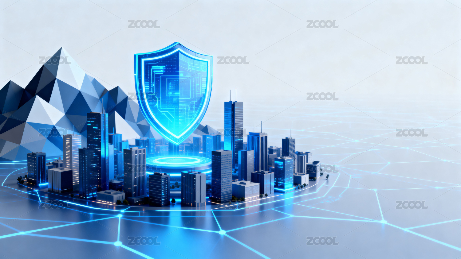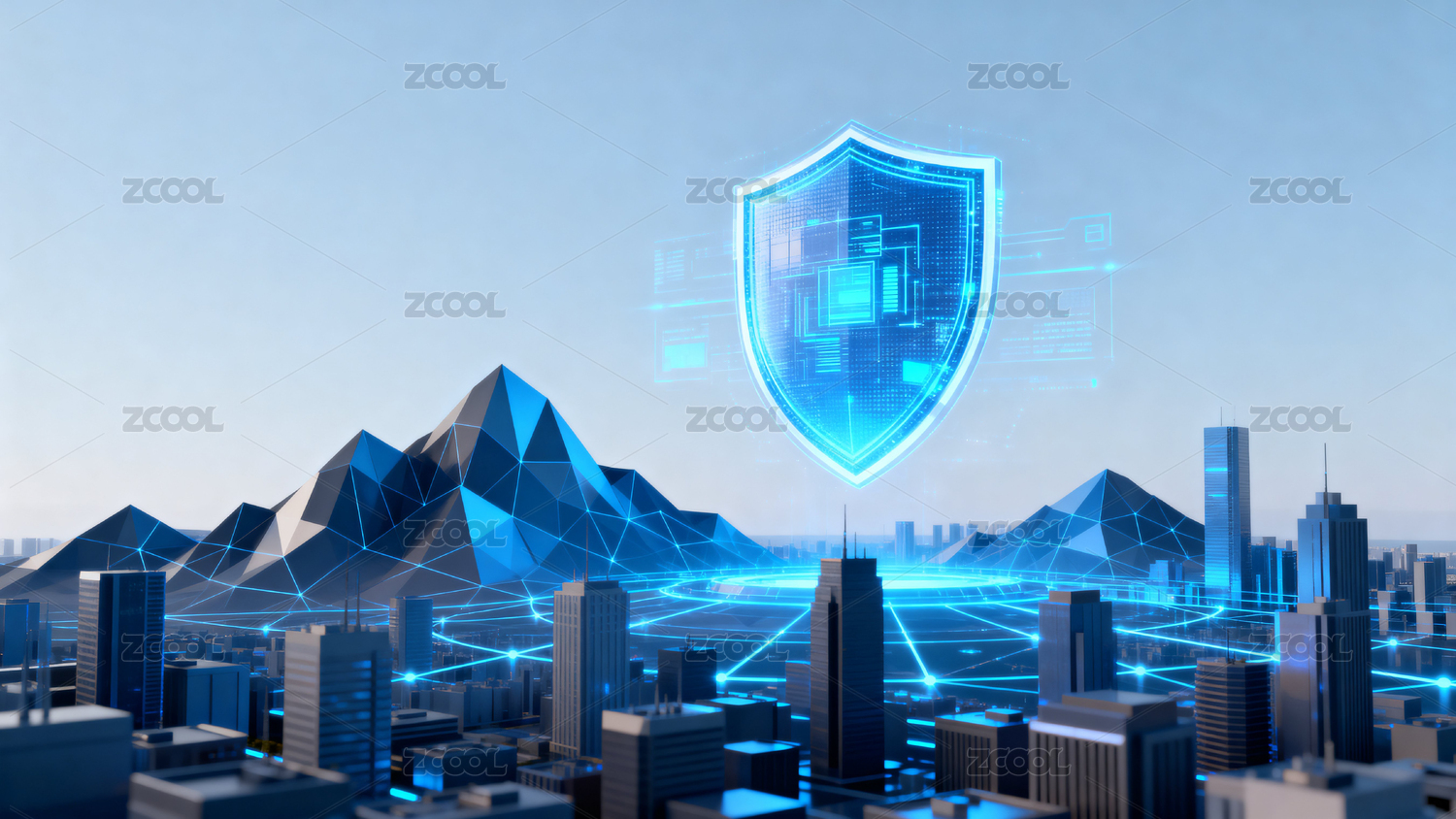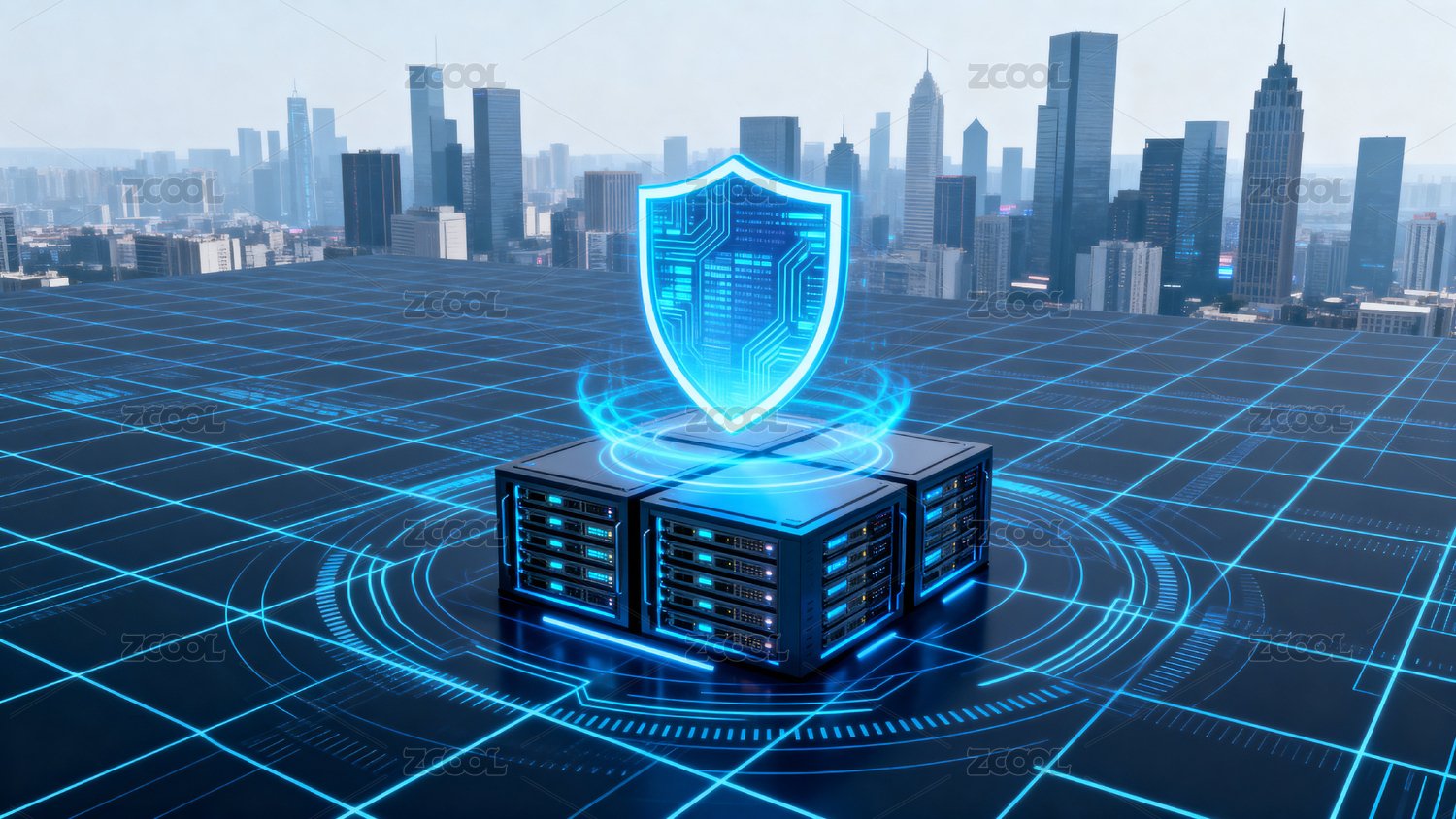 城市高楼与科技盾牌