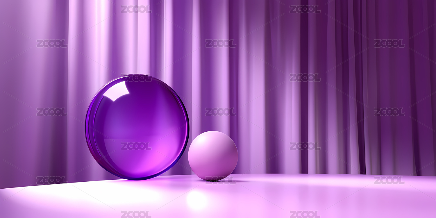 紫色背景下的透明球与哑光球