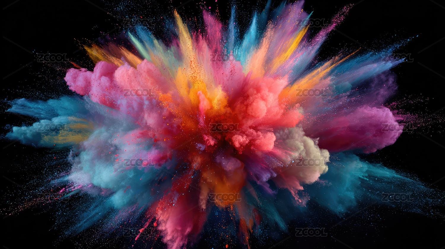 色彩缤纷多彩粉末爆炸瞬间,潮流艺术背景
