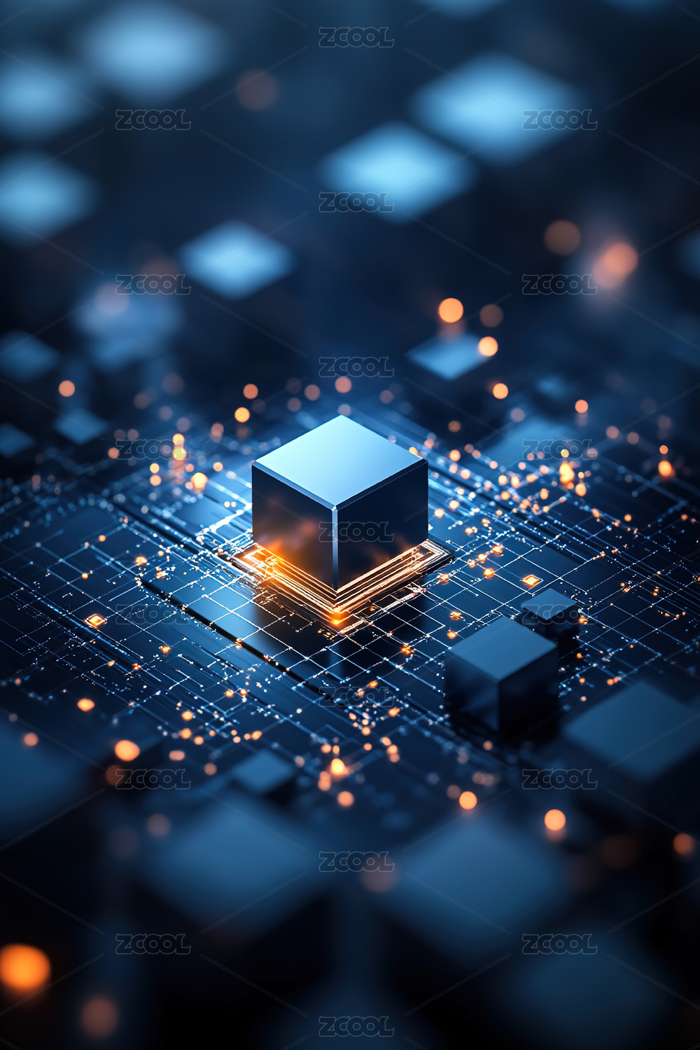 具有三位科技感的电路板和芯片