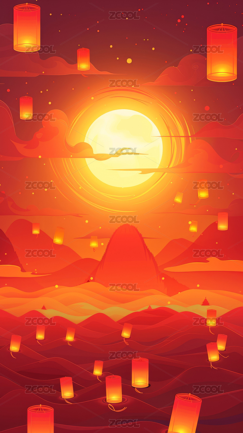 夜空满月与孔明灯中秋佳节月圆人团圆