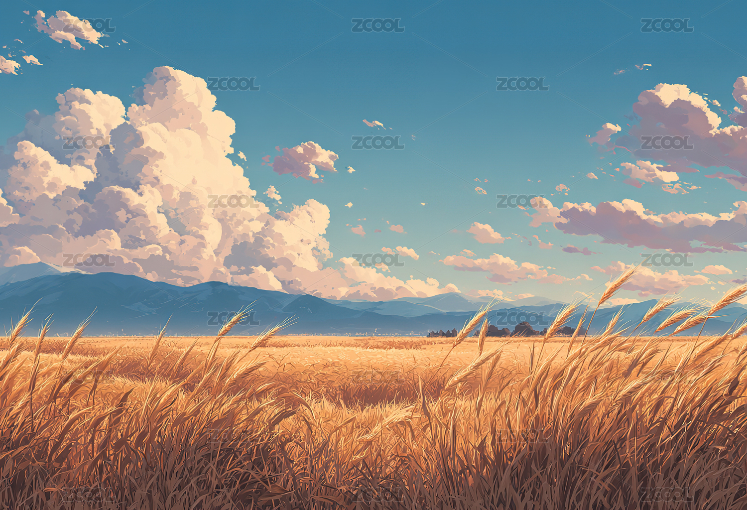 金黄麦田与远山云景