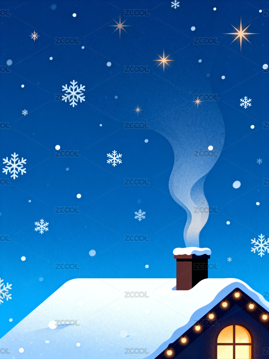 温暖,蓝色,灯光,窗户,夜空,夜晚,房屋,雪,烟囱,烟