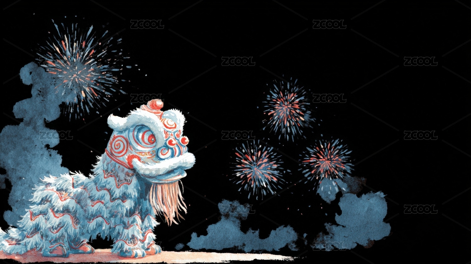 色彩,黑色,图案,装饰,节日,红色,舞狮,烟花,鞭炮,狮子