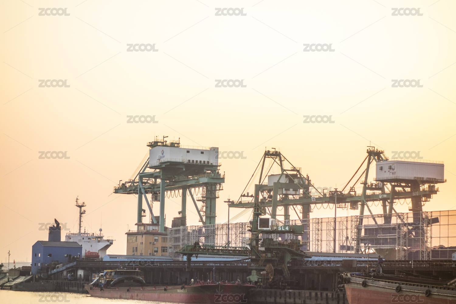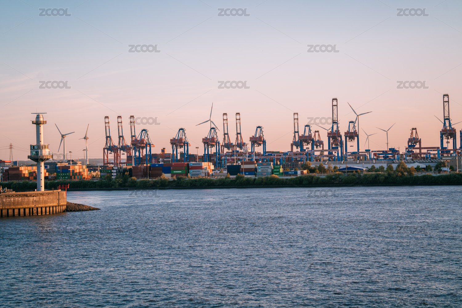 城市,建筑,天空,夕阳,金色,黄昏,蓝色,货轮,集装箱,起重机