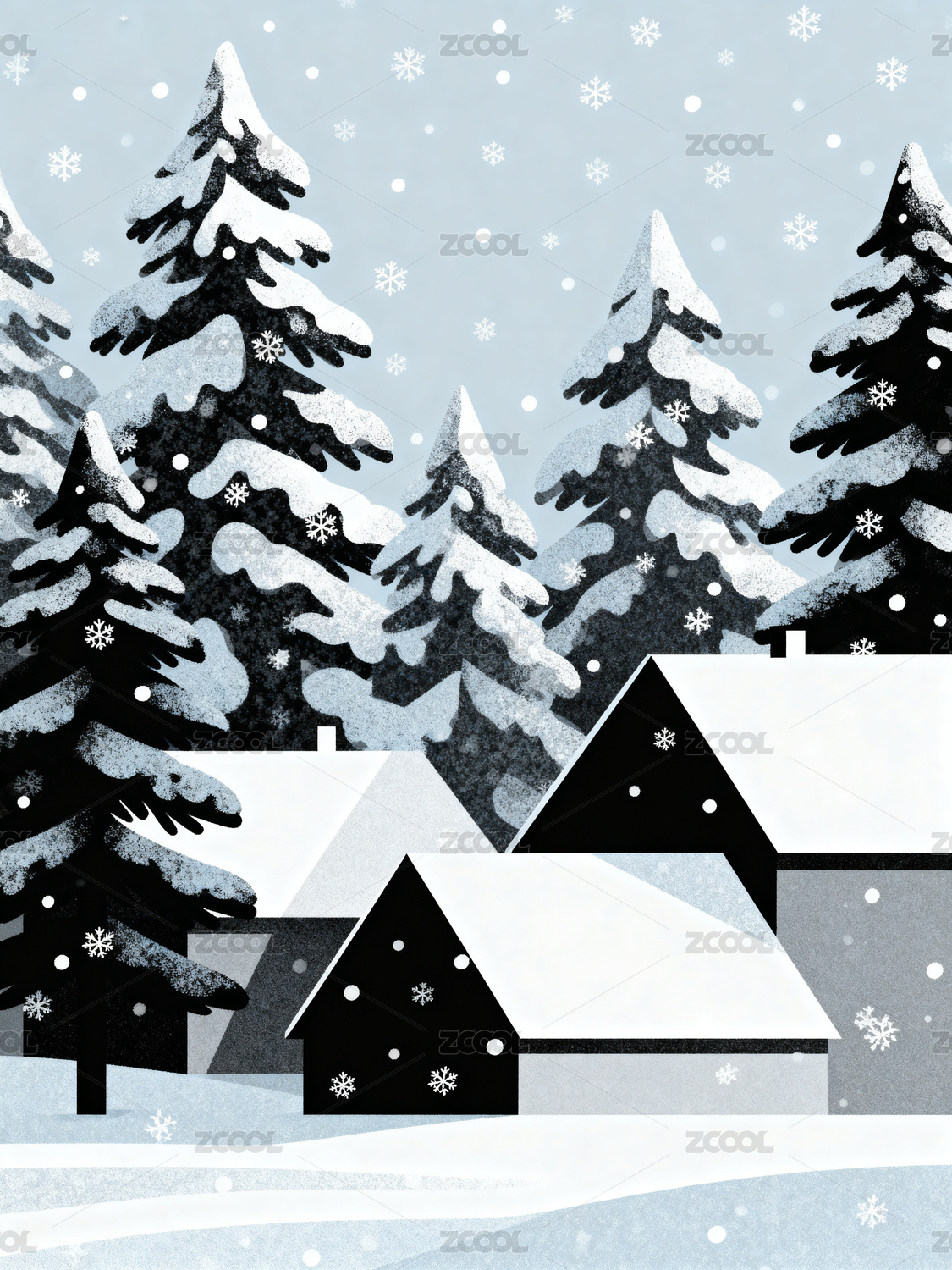 卡通冬季圣诞节大雪节气下雪雪景矢量插画