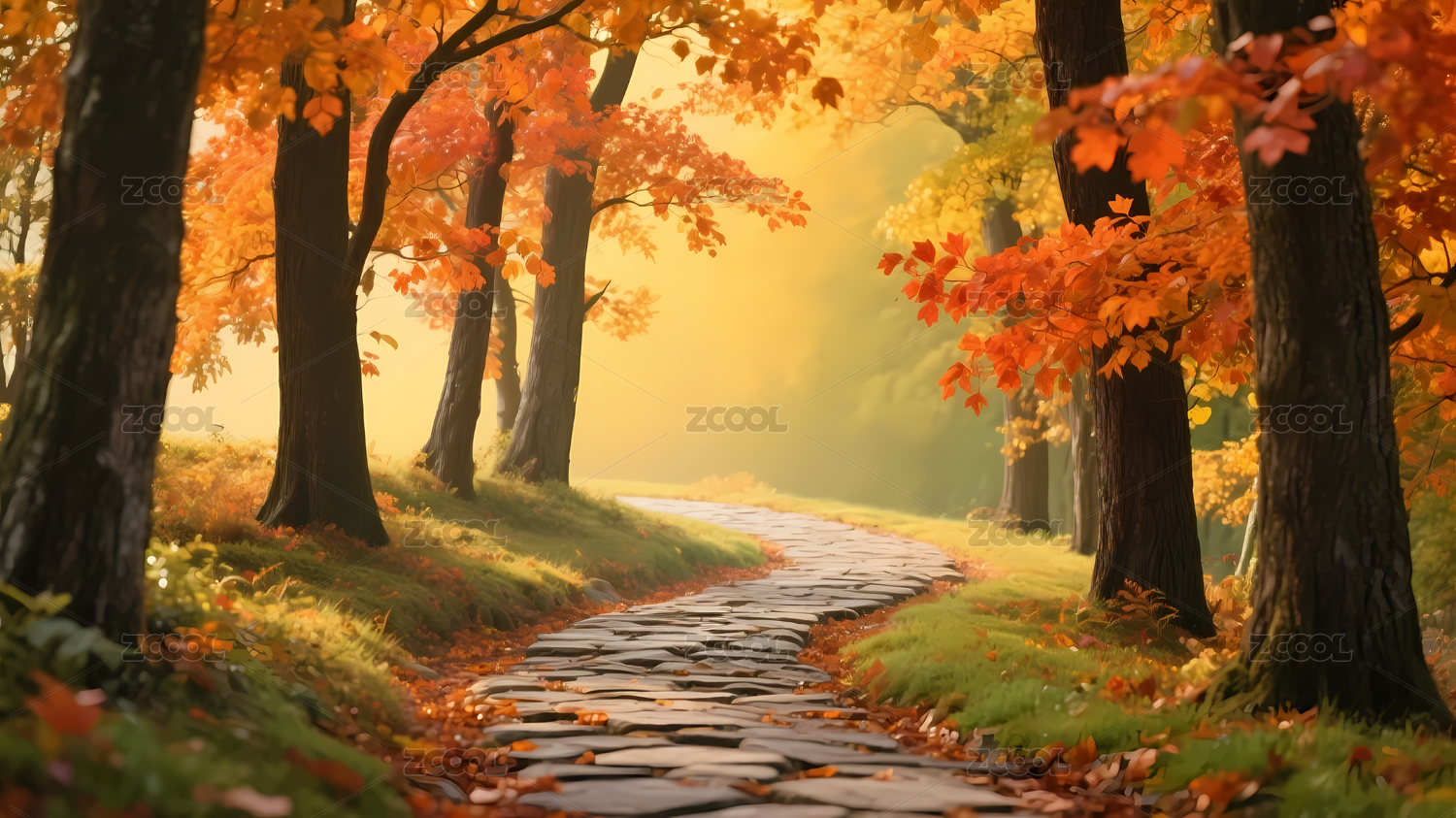 秋天秋季红叶山林蜿蜒小路风景壁纸