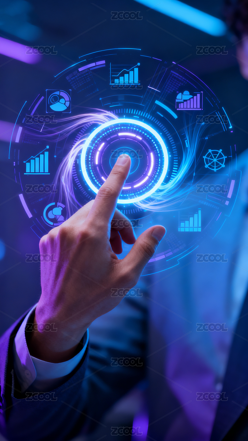 手指触碰虚拟科技界面