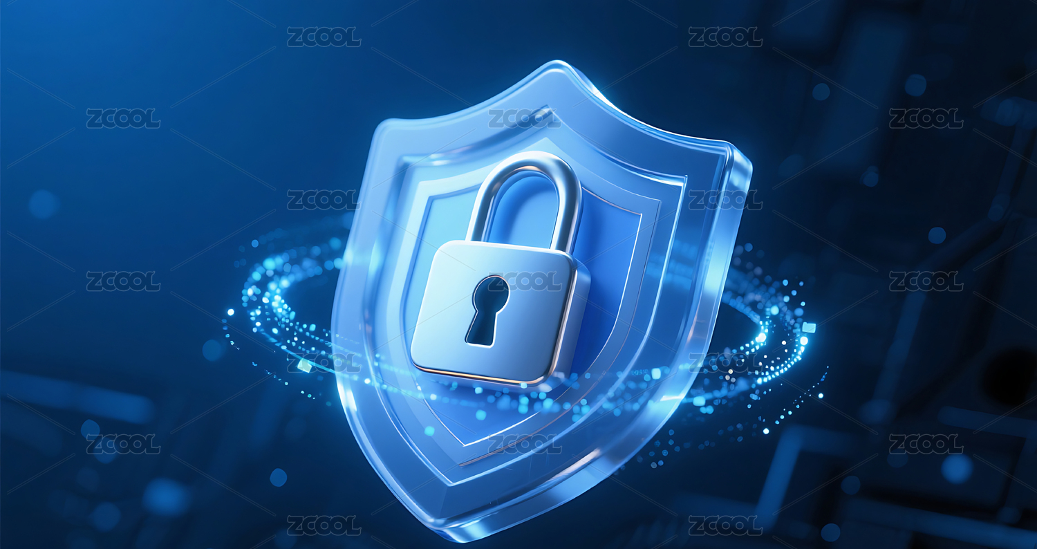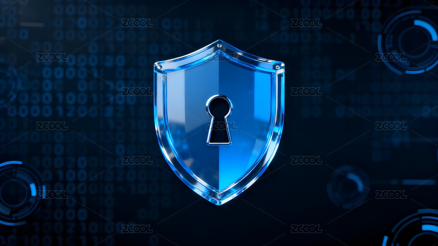 深蓝色科技悬浮半透明数据防护罩盾牌背景
