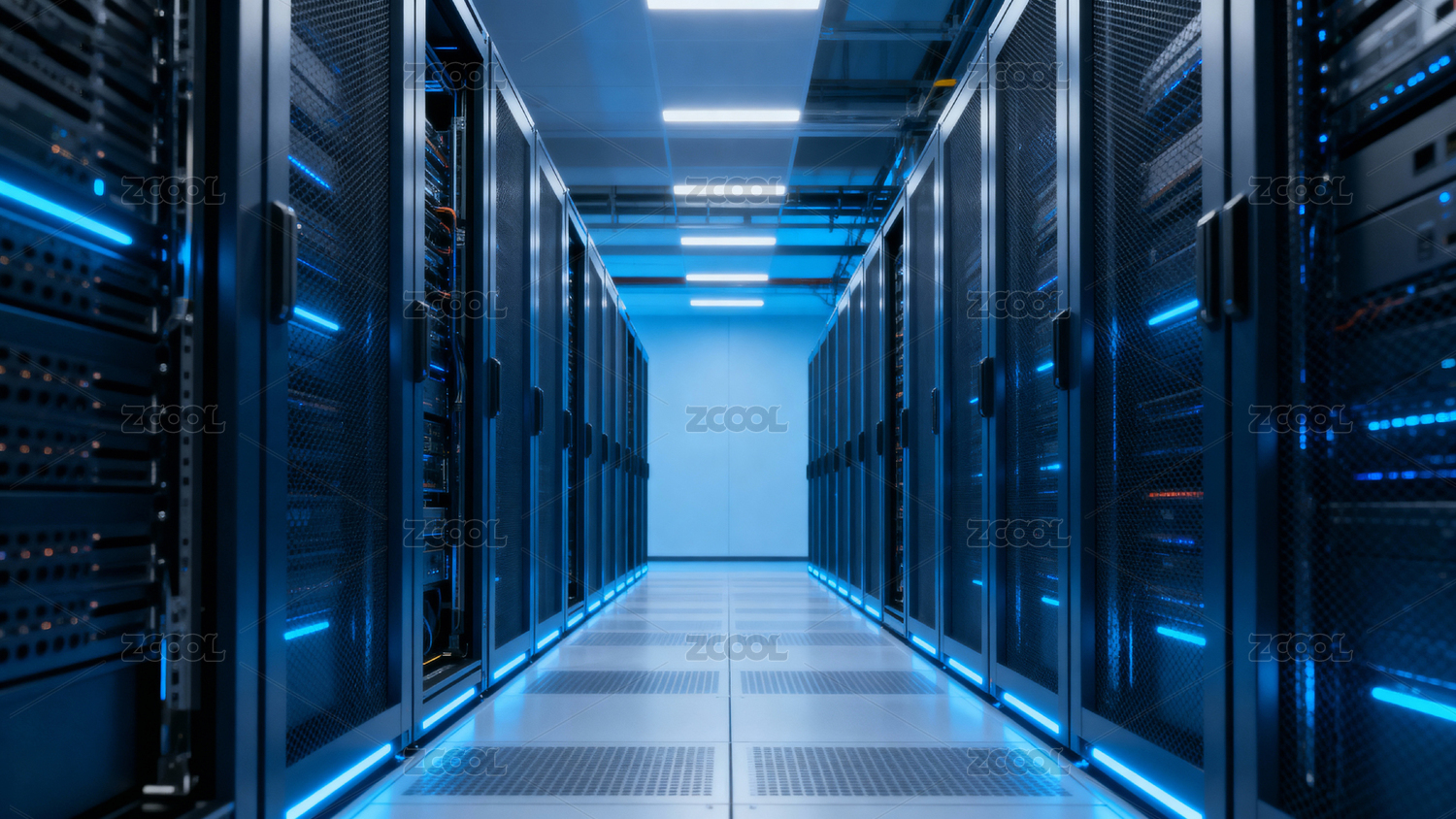 科技感十足的服务器机房长廊