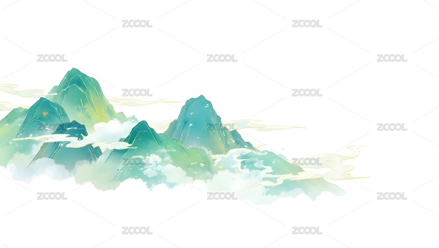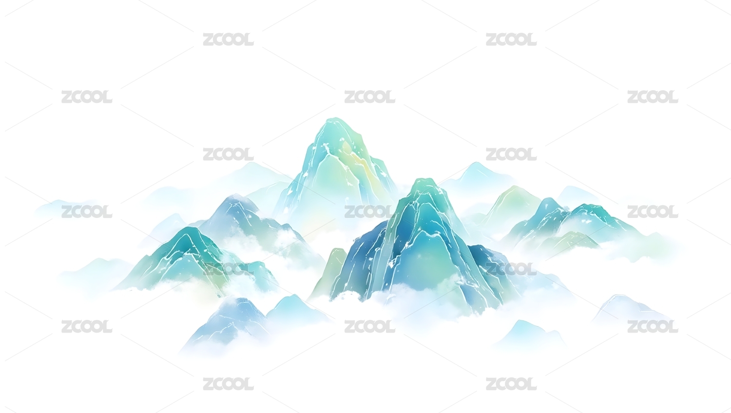 青绿山水云雾缭绕