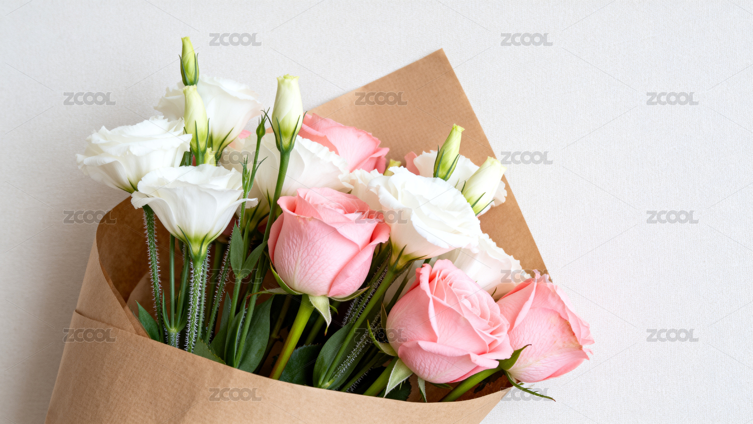 粉色,自然,绿叶,绽放,柔美,视觉,白色,玫瑰,花束,包装