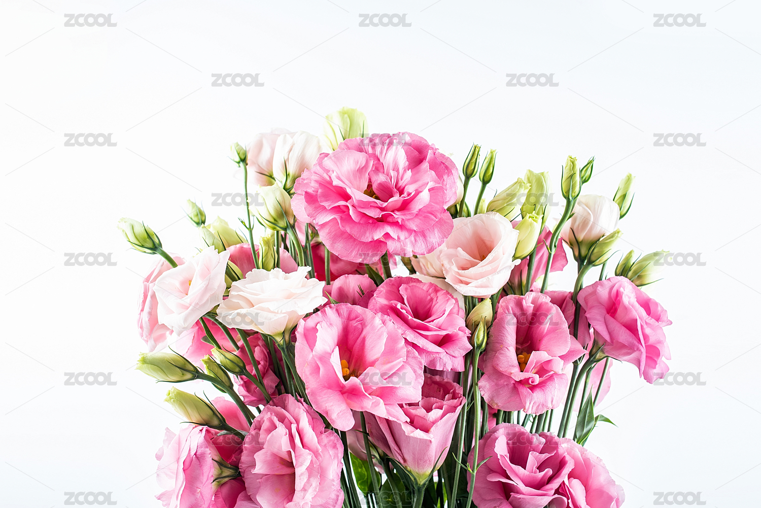 淡粉色背景上多枝鲜花爱莎玫瑰