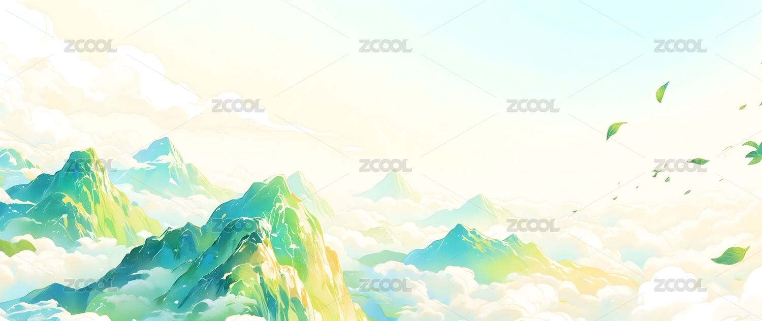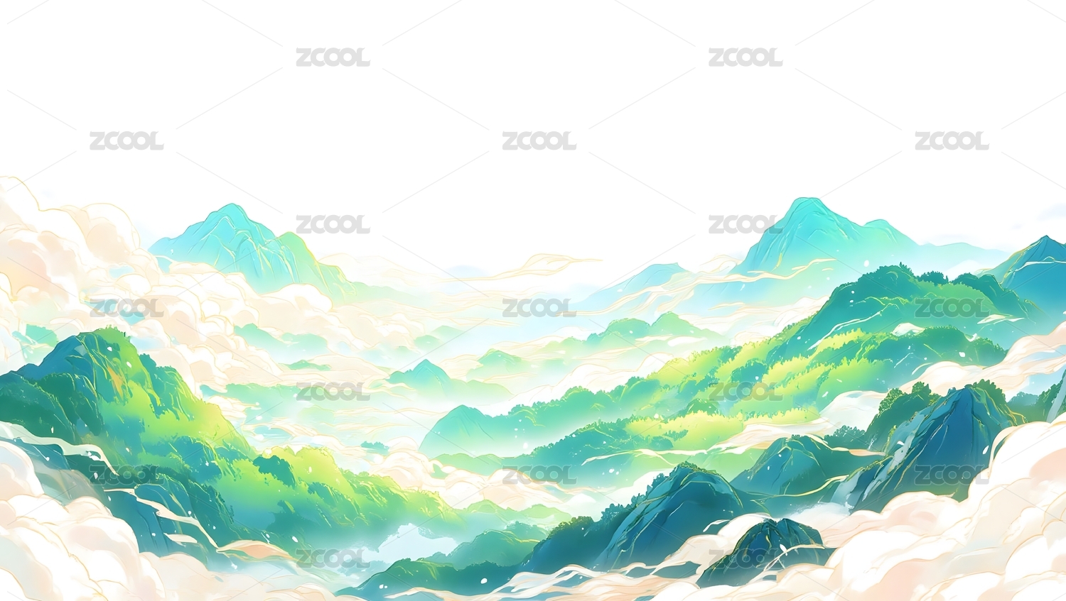 自然,艺术,山峰,层次,色彩,绘画,天空,流动,云雾,翠绿