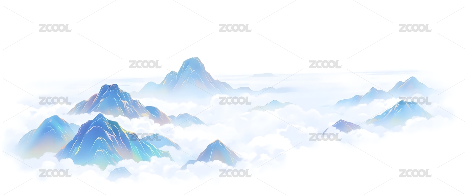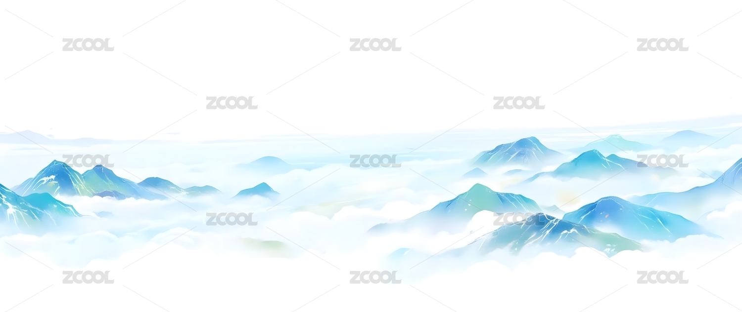 云雾缭绕的蓝色山峰画卷