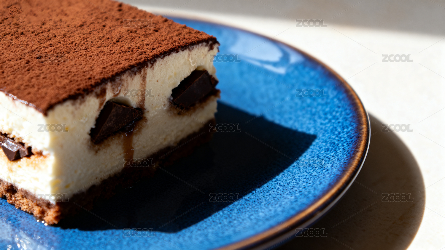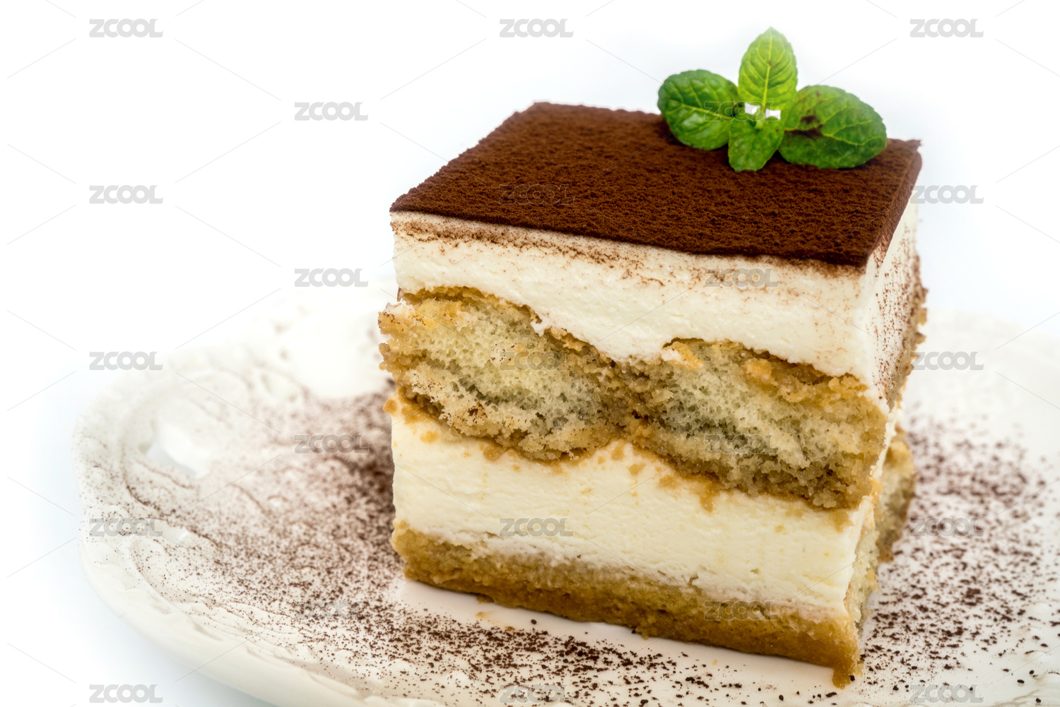 桌上新鲜的提拉米苏蛋糕 白色背景